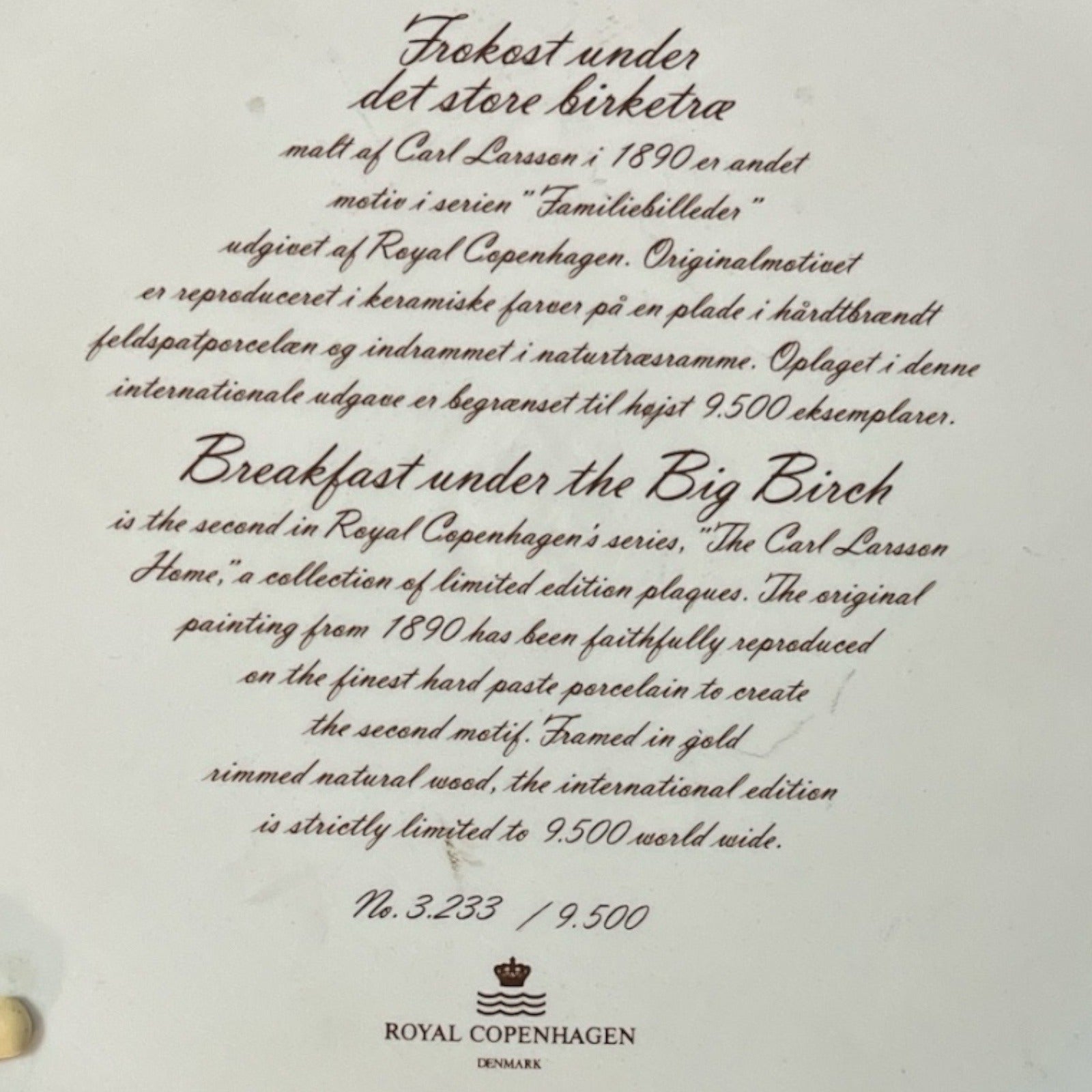 Royal Copenhagen Carl Larsson Limited Edition Porcelain Plaque – Breakfast under the Big Birch 3233/9500 (1890 Artwork)