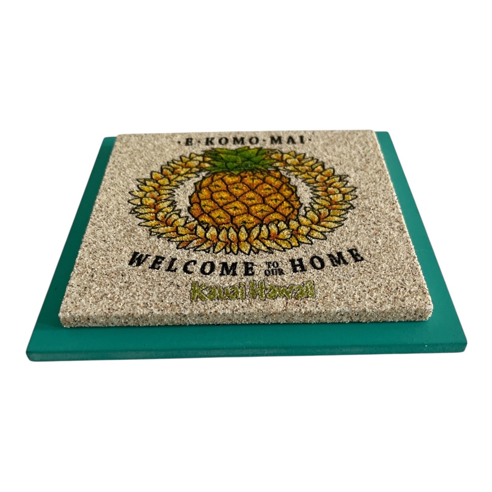 SandArt Hawaii Wall Plaque E Komo Mai Pineapple Welcome Sign Kauai