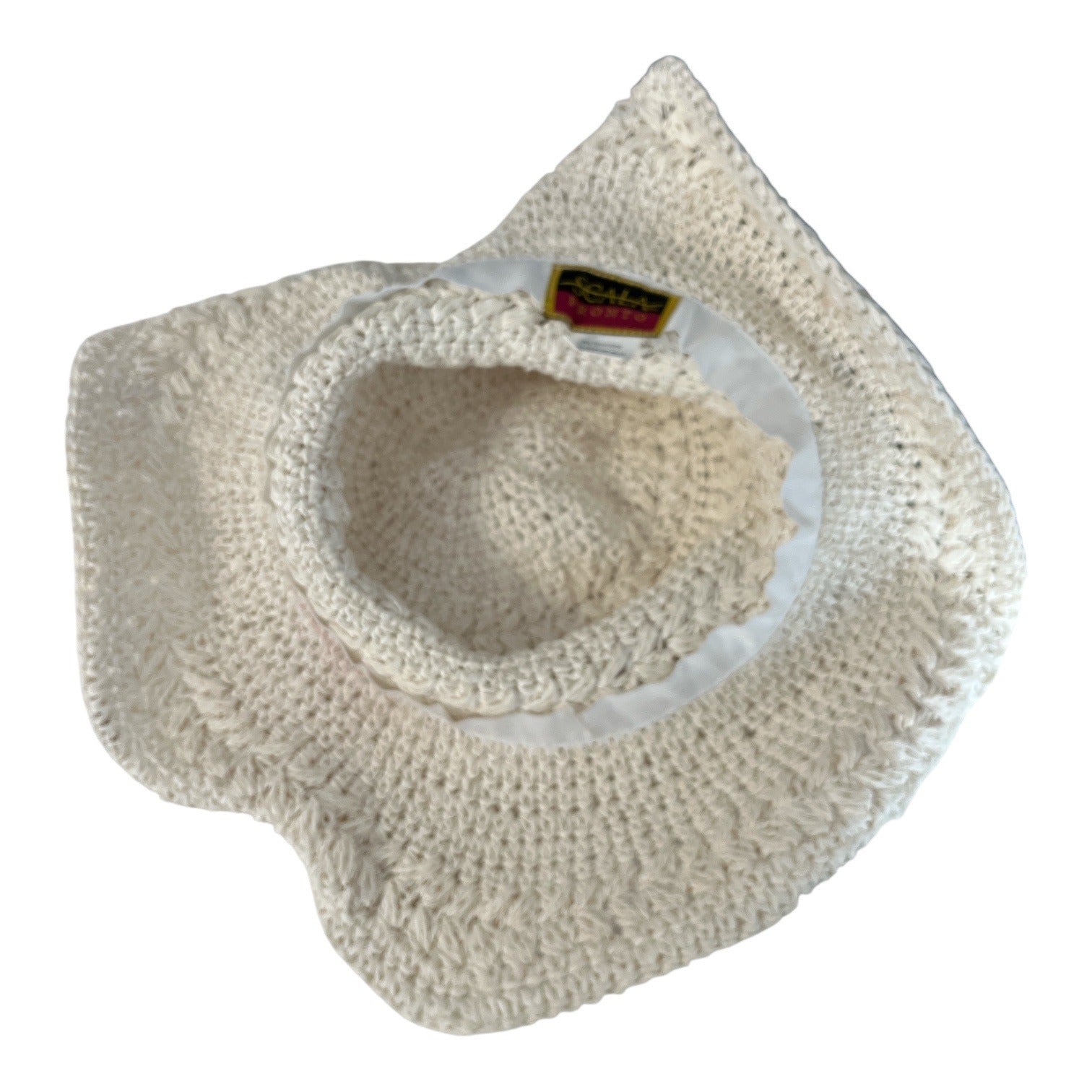 Lightweight crocheted sun hat featuring an airy woven design, soft structure, and wide floppy brim. Breathable natural-look material makes it perfect for beachwear, garden parties, travel, or summer outfits. Flexible construction allows easy packing.