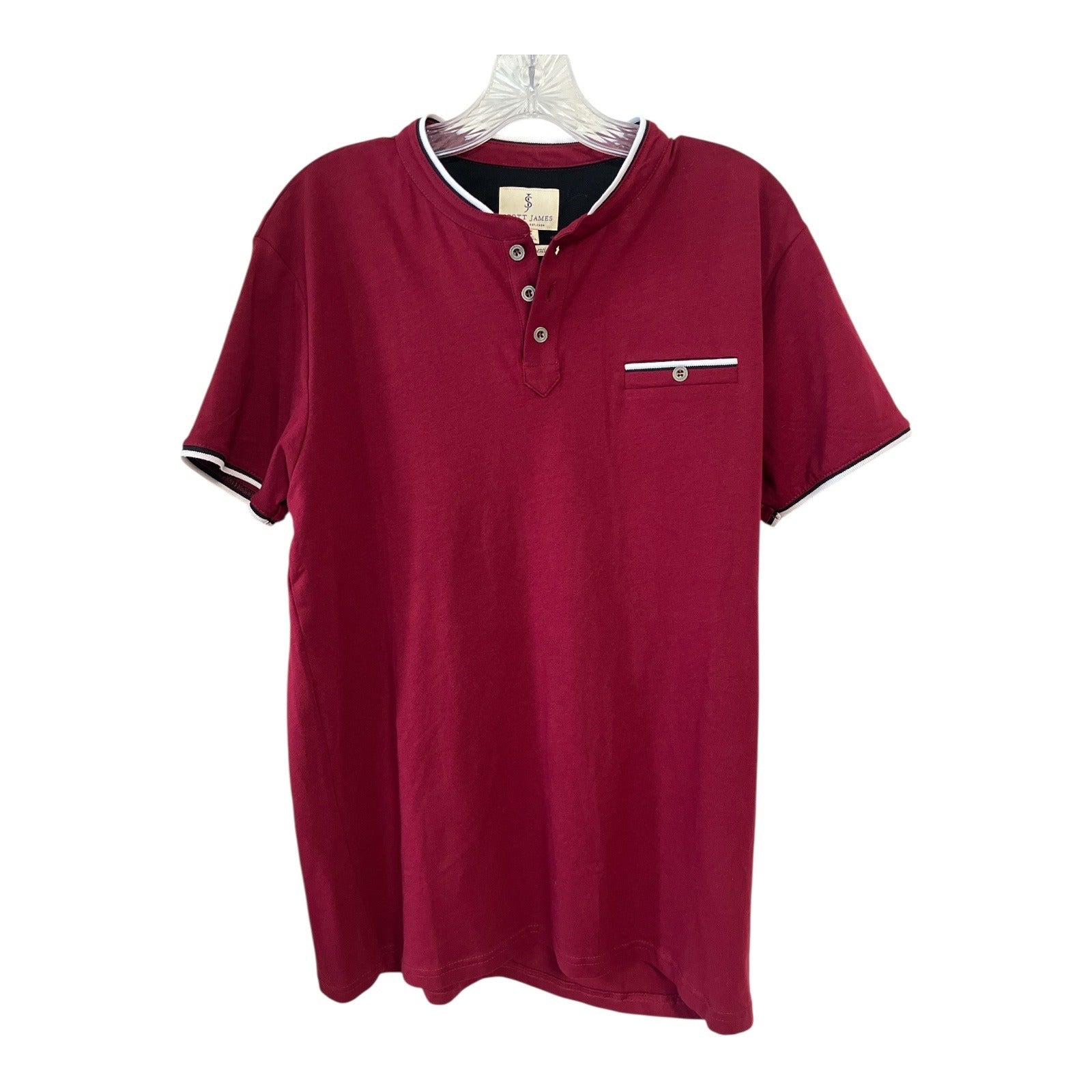 Scott James Men’s Short Sleeve Henley Shirt – Red – Size L (Fits Like U.S. Medium) – 21 x 28