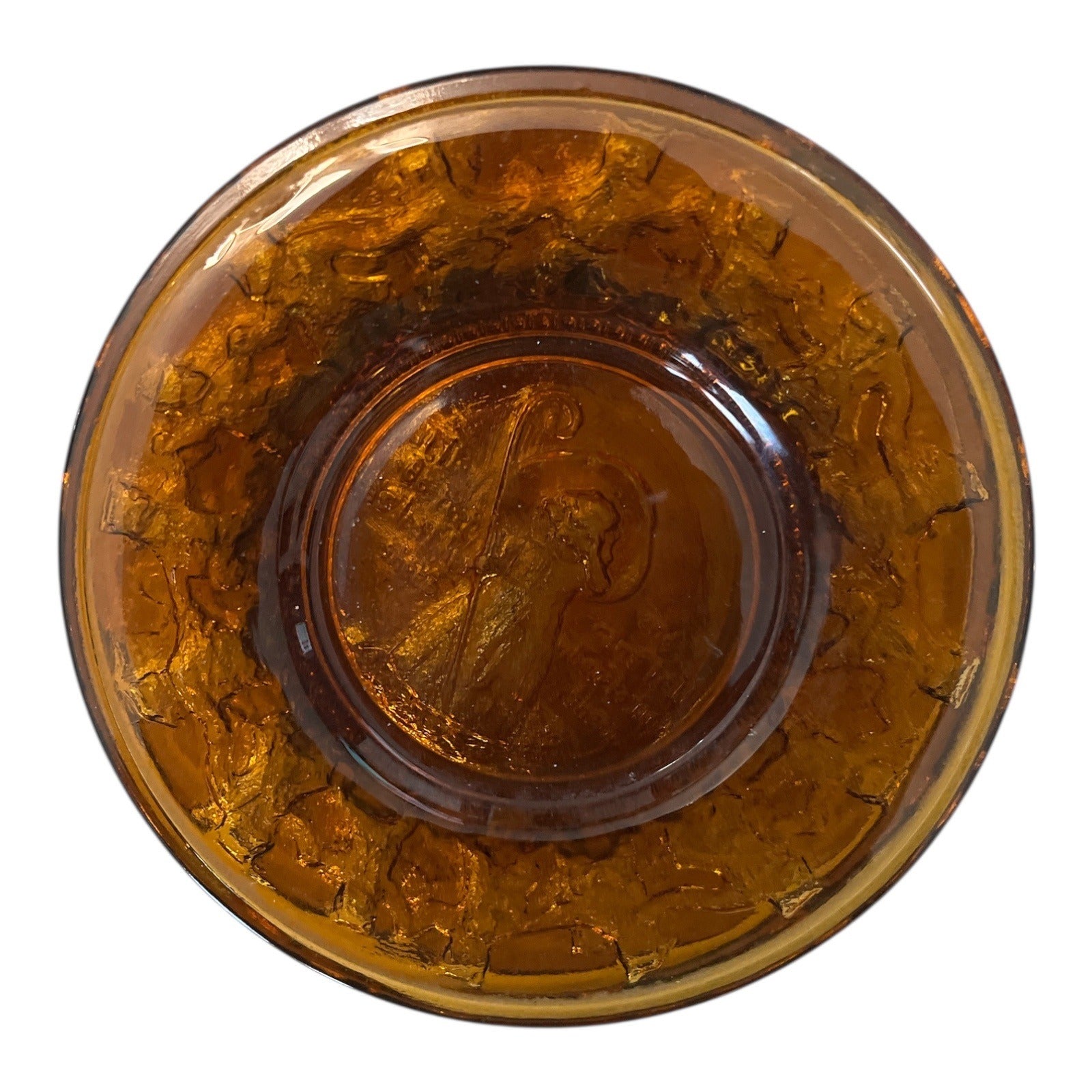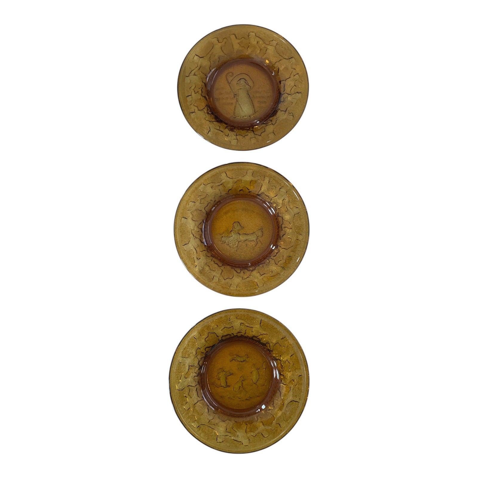 Set of 3 Vintage Amber Glass Nursery Rhyme Plates – 6.5” – Little Bo Peep, Hey Diddle Diddle, This Little Piggy – Embossed Glass
