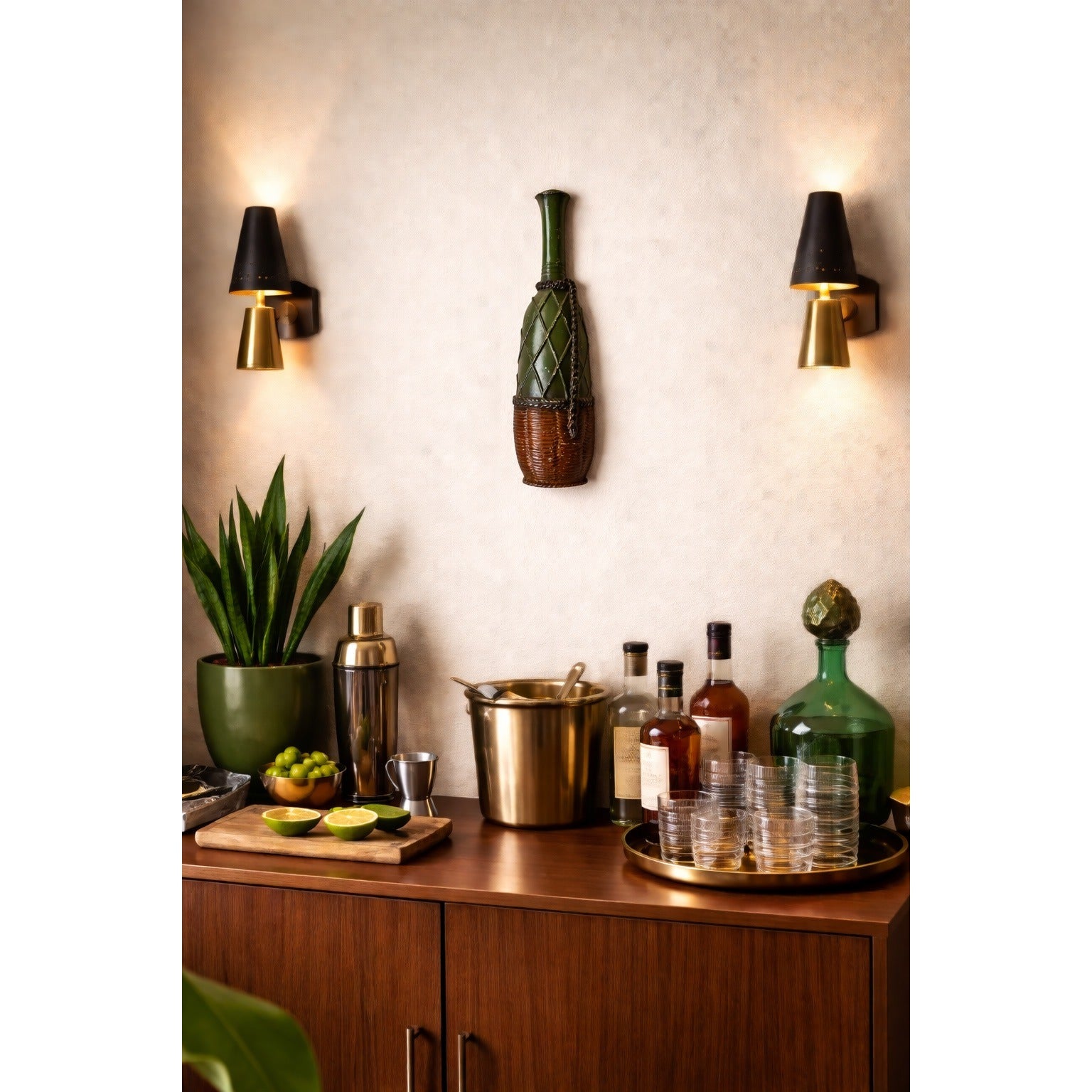 Sexton Mid Century Modern Metal Wine Bottle Wall Art Green Brown MCM