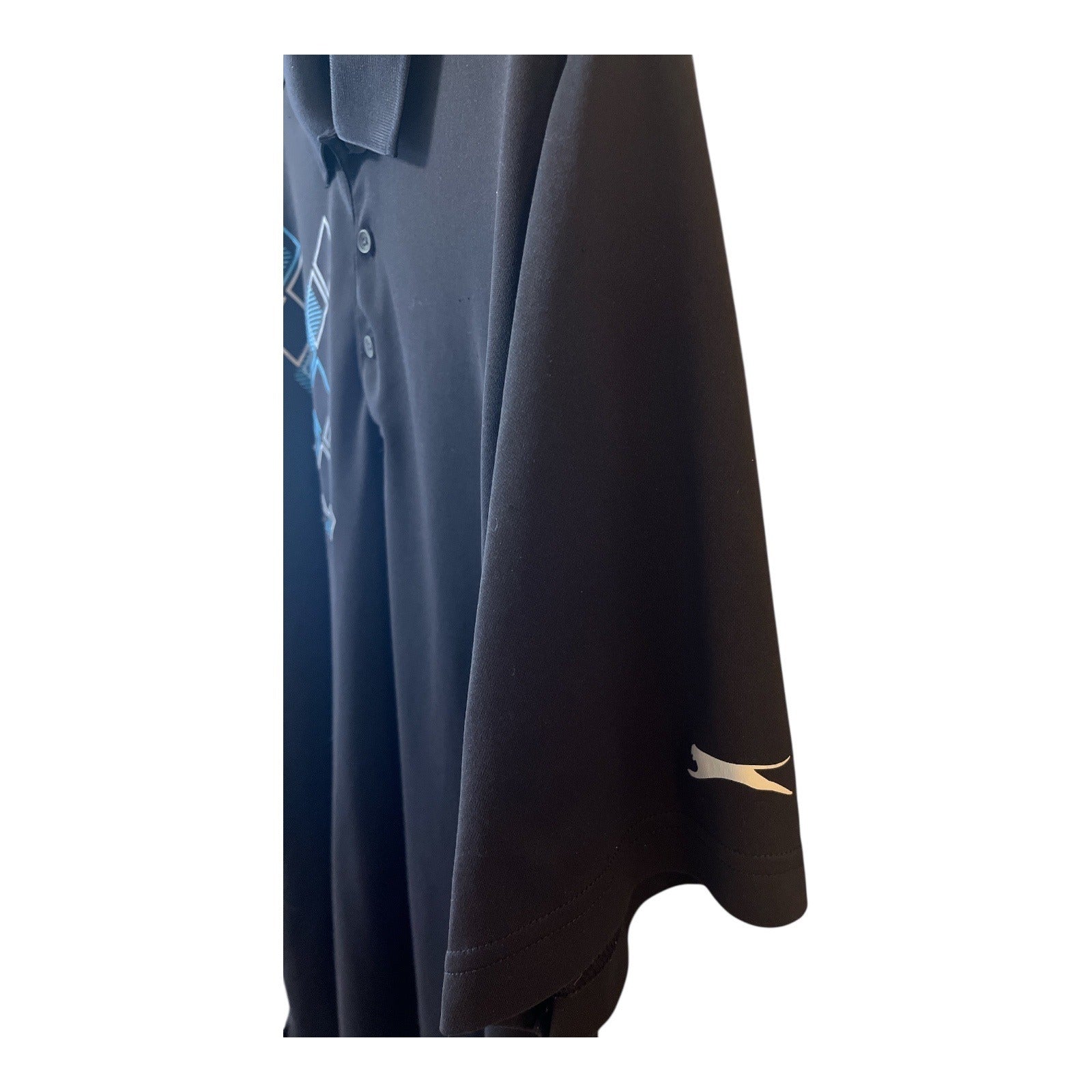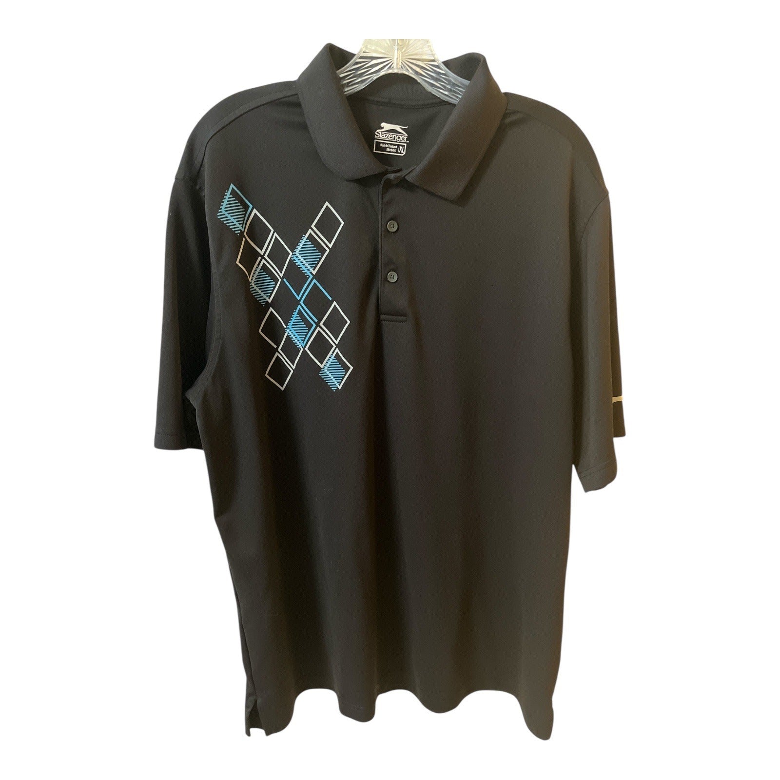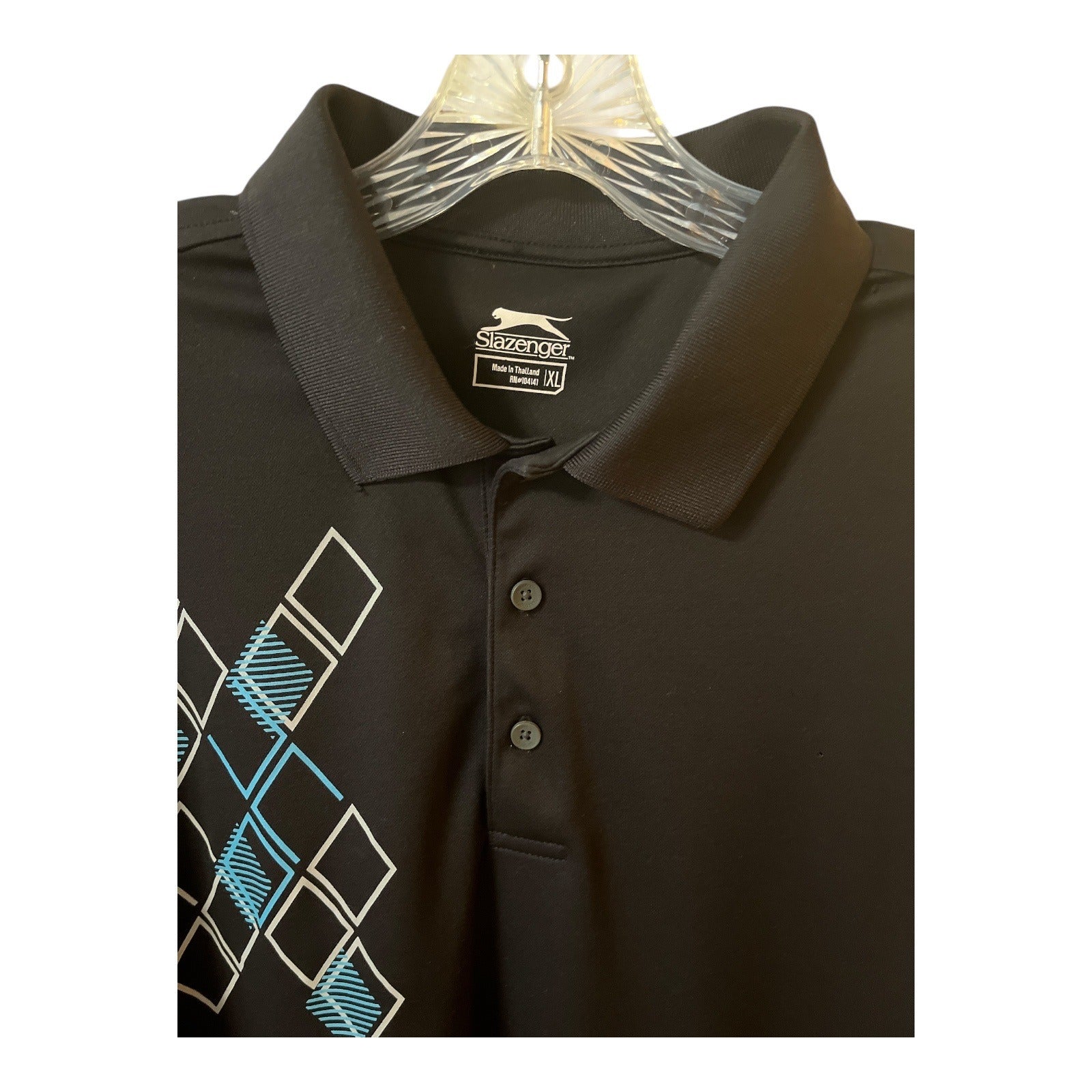 Slazenger Black Golf Polo Shirt – Size XL – Blue & White Diamond Pattern – 24 x 29.5”