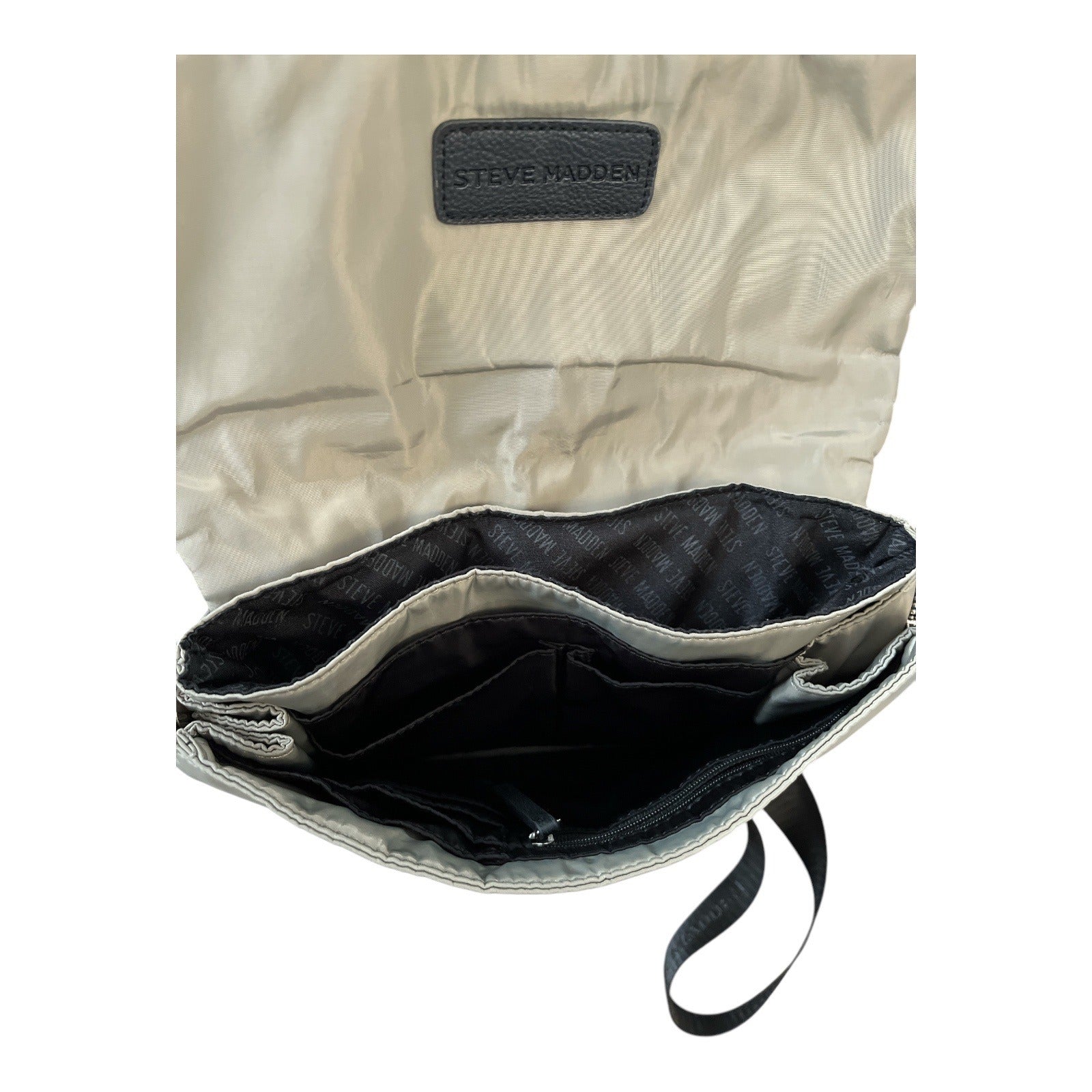 Upgrade your wardrobe with this stylish preowned Steve Madden quilted crossbody bag in good condition! Measuring 8.5" x 10", this bag is the perfect blend of fashion and function. The gray quilted design gives it a sleek, modern look, while the padded material adds a touch of luxury. It features two zippered compartments with silver zippers, providing plenty of storage for your essentials. The black adjustable strap, secured with silver hardware, makes it easy to carry in different ways—whether as a shoulder bag or crossbody.