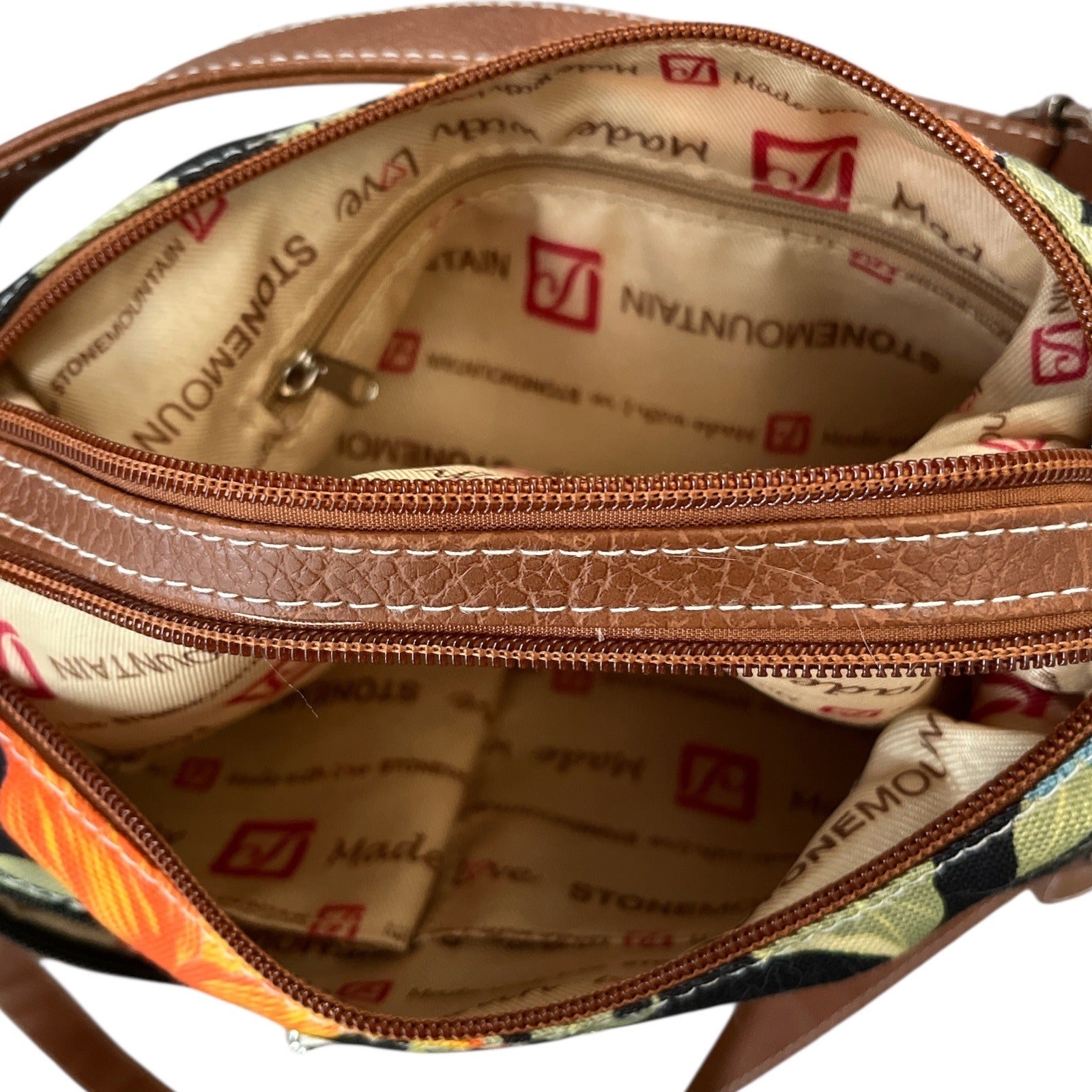 Stone Mountain Faux Leather Shoulder Bag Brown Floral Lining – 12x9x3 – Vegan Leather Tote (2000s–2010s)