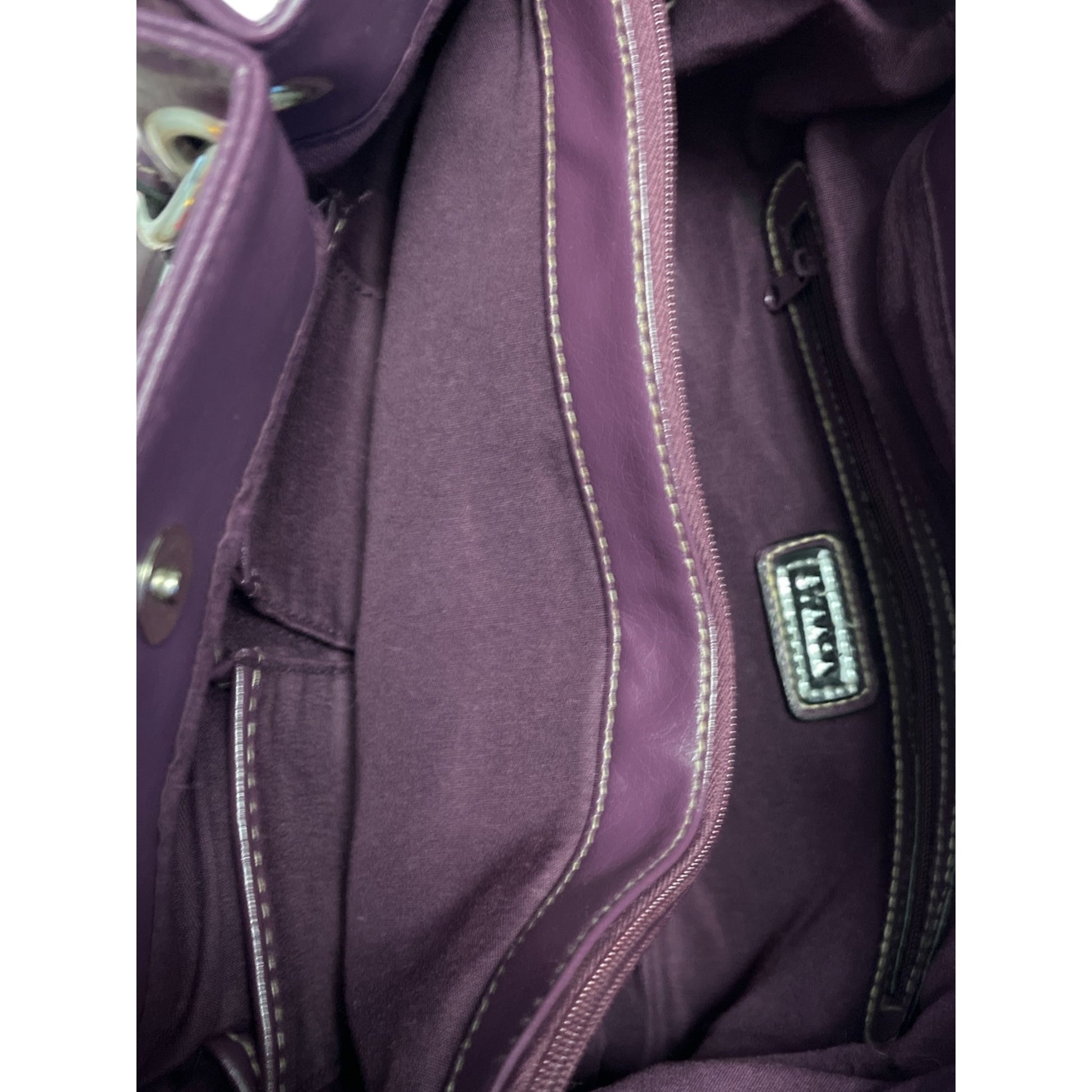 * Color: Plum purple with silver-tone hardware