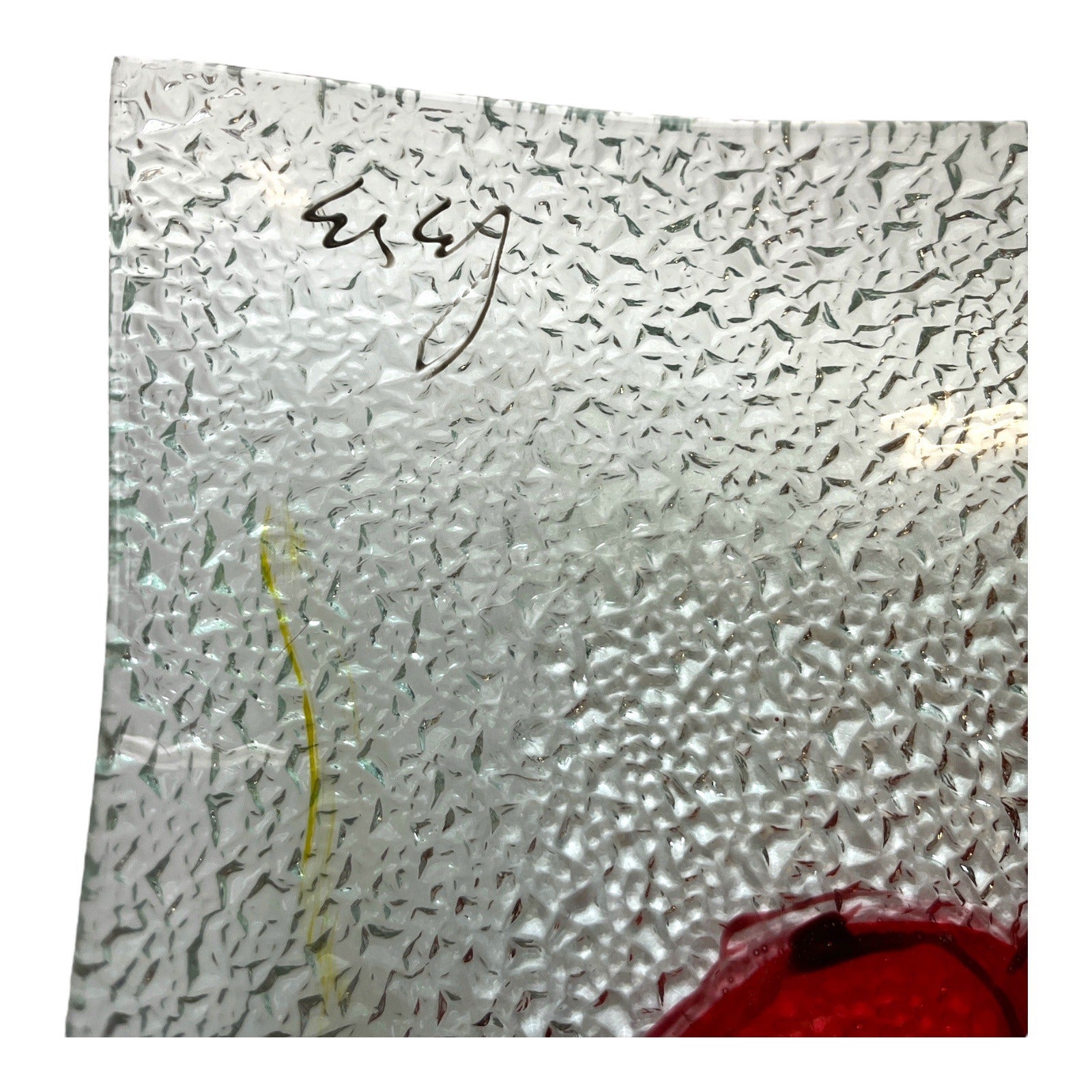 Striking Handcrafted Fusion Glass Plate – Signed Art Featuring a Vibrant Poppy