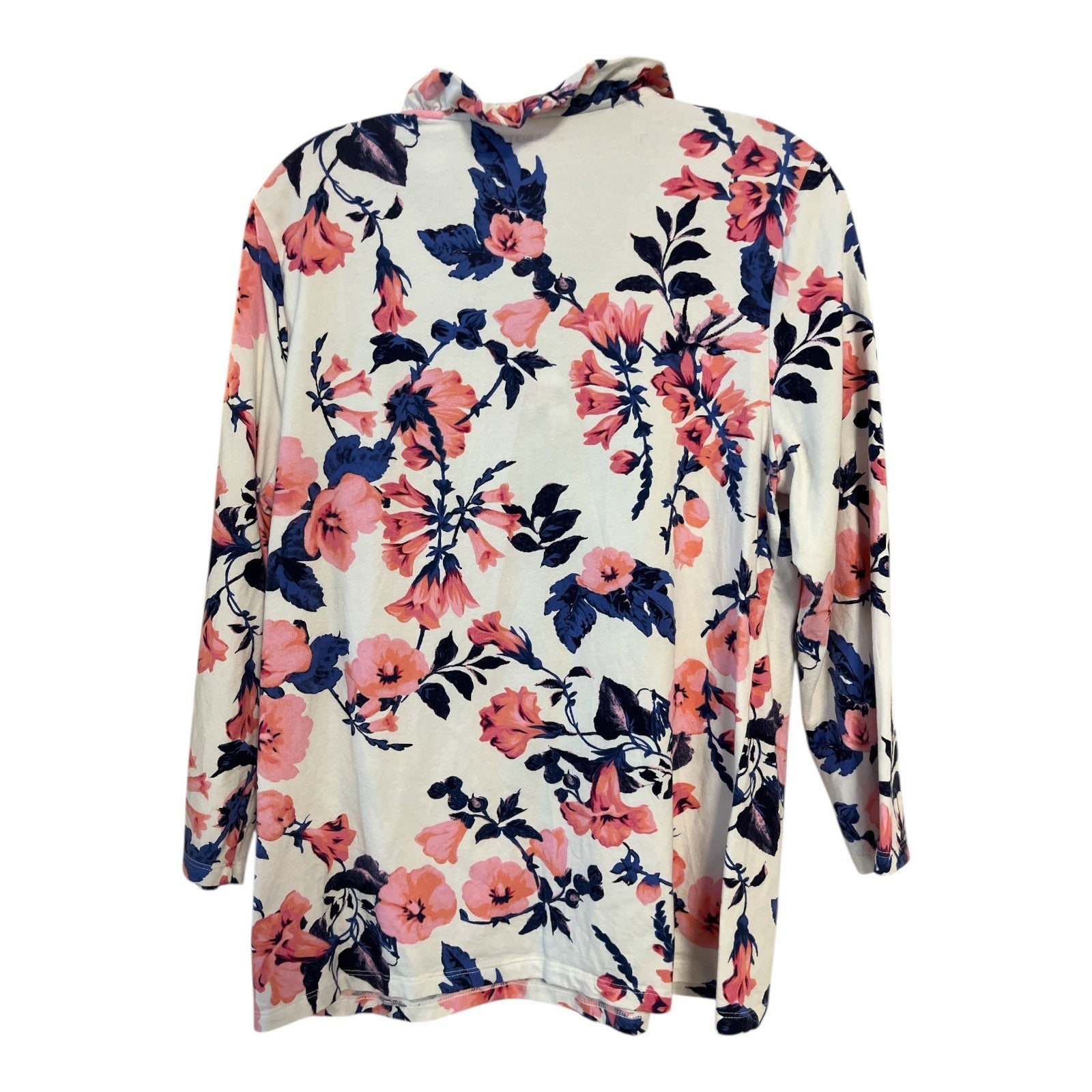 Talbots Women’s Floral Long Sleeve Knit Top – Size Large – Ruffled V-Neck – Cotton Spandex – 40 x 26