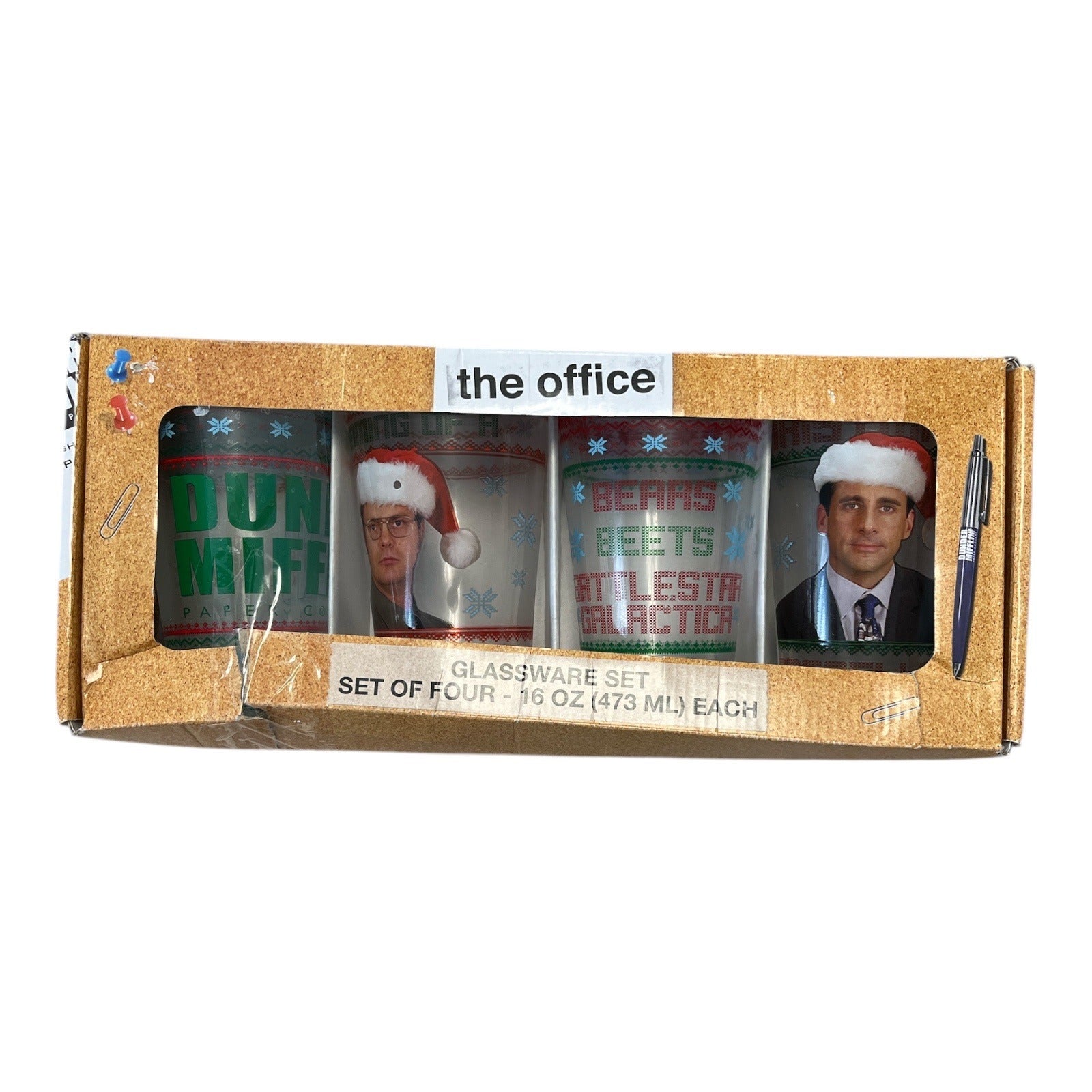 The Office Christmas Glassware Set of 4 Dwight Schrute Michael Scott 16 oz Tumblers
