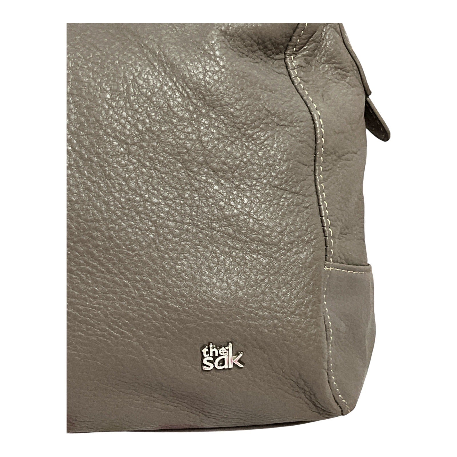 A versatile handbag from **The Sak**, crafted from soft pebbled leather in a neutral taupe “Portobello” shade. Designed with double handles for shoulder or hand carry, this satchel blends everyday functionality with a timeless style.
