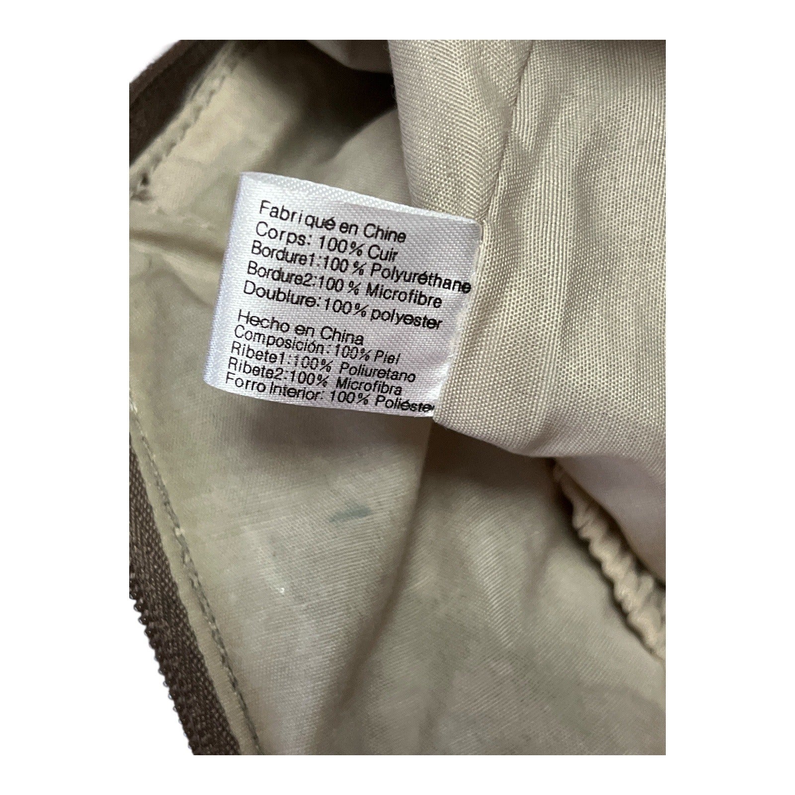 Condition: Pre-owned with visible wear. Scuffs and marks on exterior leather (see photos). Interior shows light staining on lining. Zipper and stitching are intact. Still sturdy and functional with lots of life left.