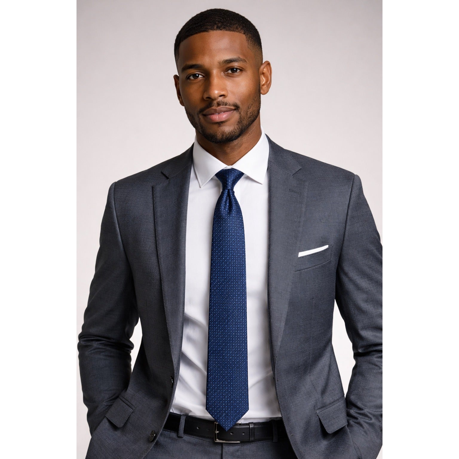 Classic designer necktie featuring a rich navy base with woven geometric dot pattern and a deep green paisley lining. Crafted from 100 percent silk with a refined sheen and timeless width, this Tommy Hilfiger tie is a versatile staple for business, formal events, or elevated everyday wear. Made in the USA from imported fabric.