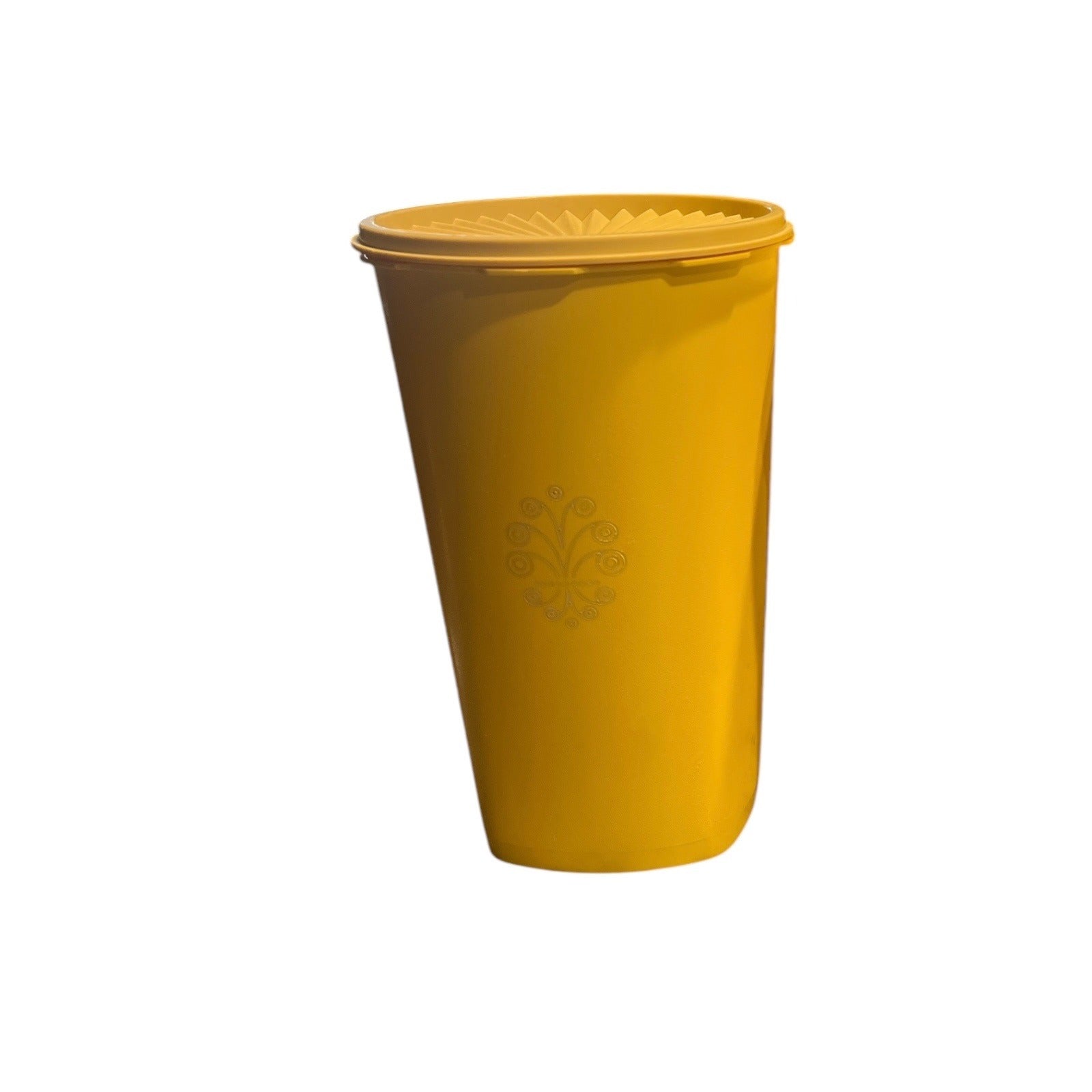 Once upon a time, this vibrant yellow Tupperware container graced kitchens with its airtight seal and practical design. Its cheerful color and durable structure made it a household favorite, offering a seamless blend of utility and charm. Now, it awaits its next adventure, ready to store your treasures securely and stylishly.