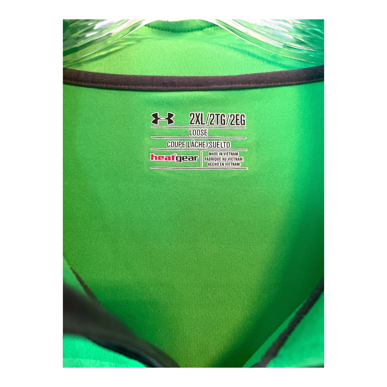3. Green Shirt – Loose-fit HeatGear long-sleeve ¼-zip pullover, made in Vietnam; light marks on sleeve (see photo).
