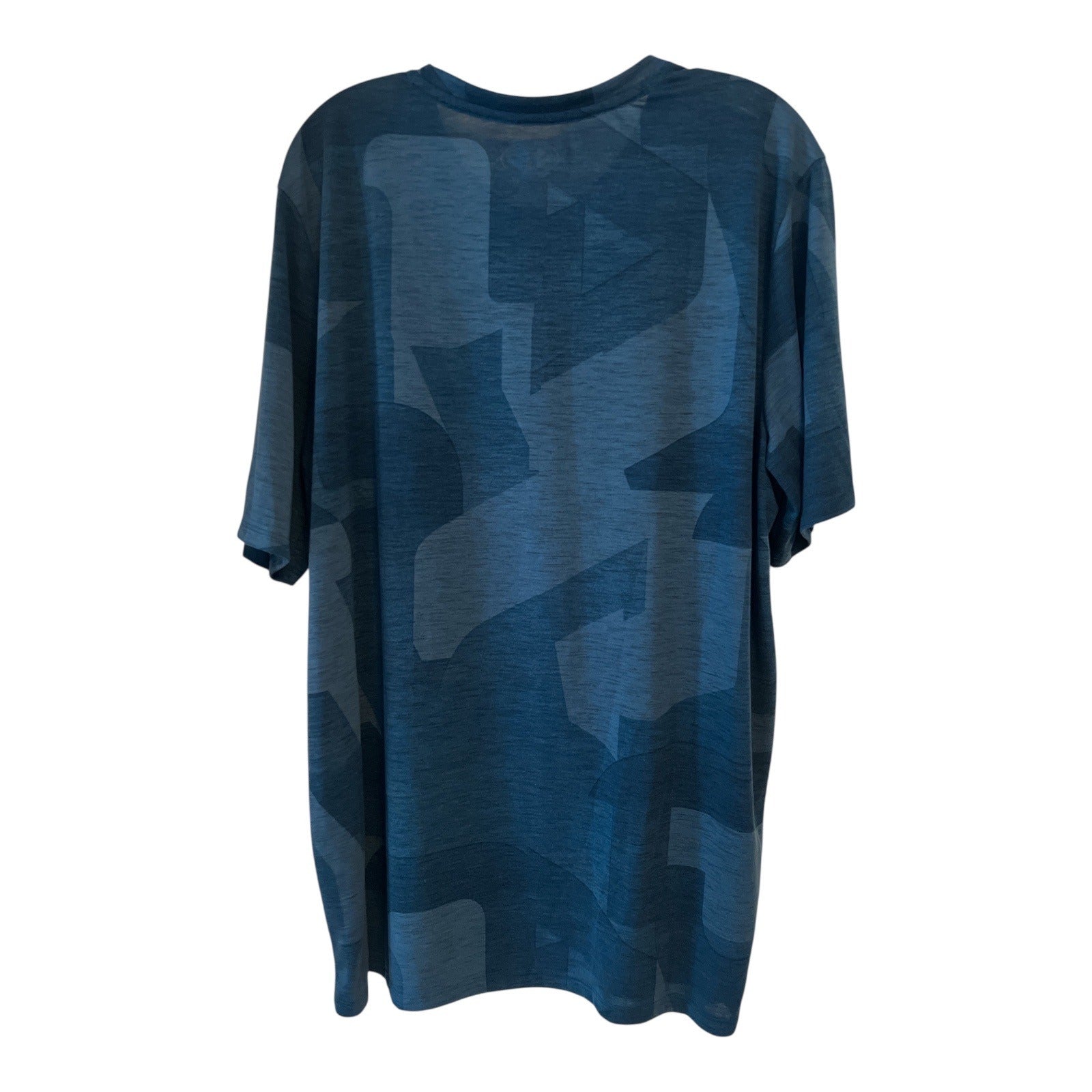2. Blue Shirt – Loose-fit "Threadborne" HeatGear short-sleeve shirt, made in China, with abstract tonal pattern.