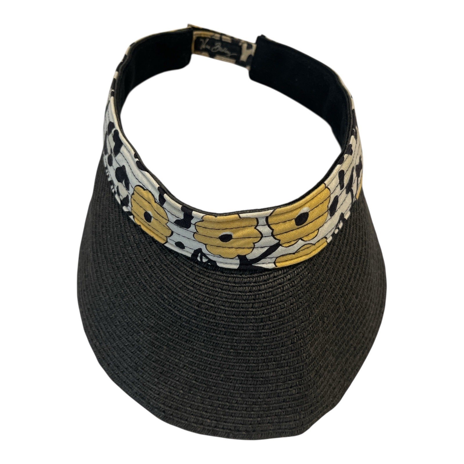 Vera Bradley Sun Visor Hat Black Woven Brim Floral Band Yellow Black Adjustable