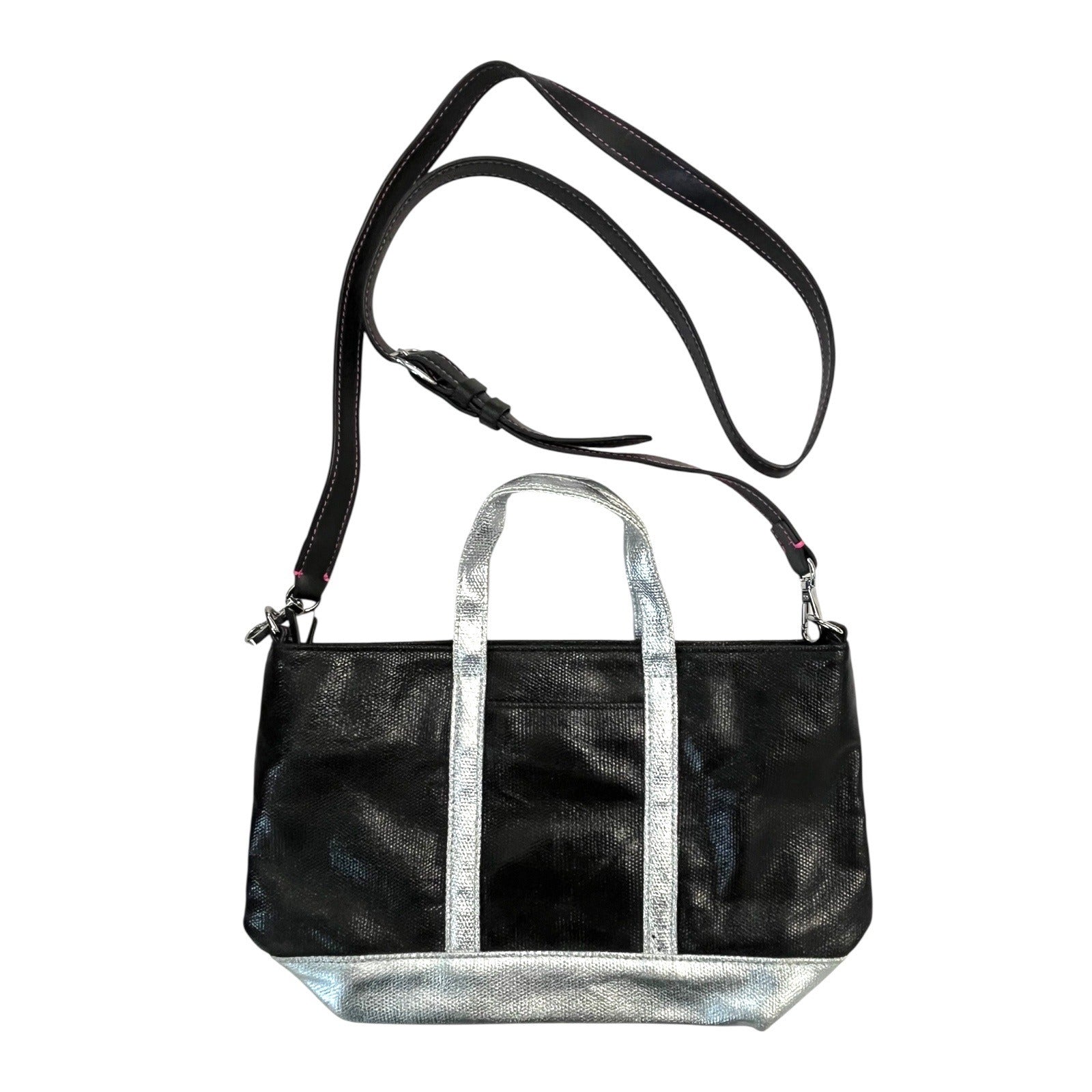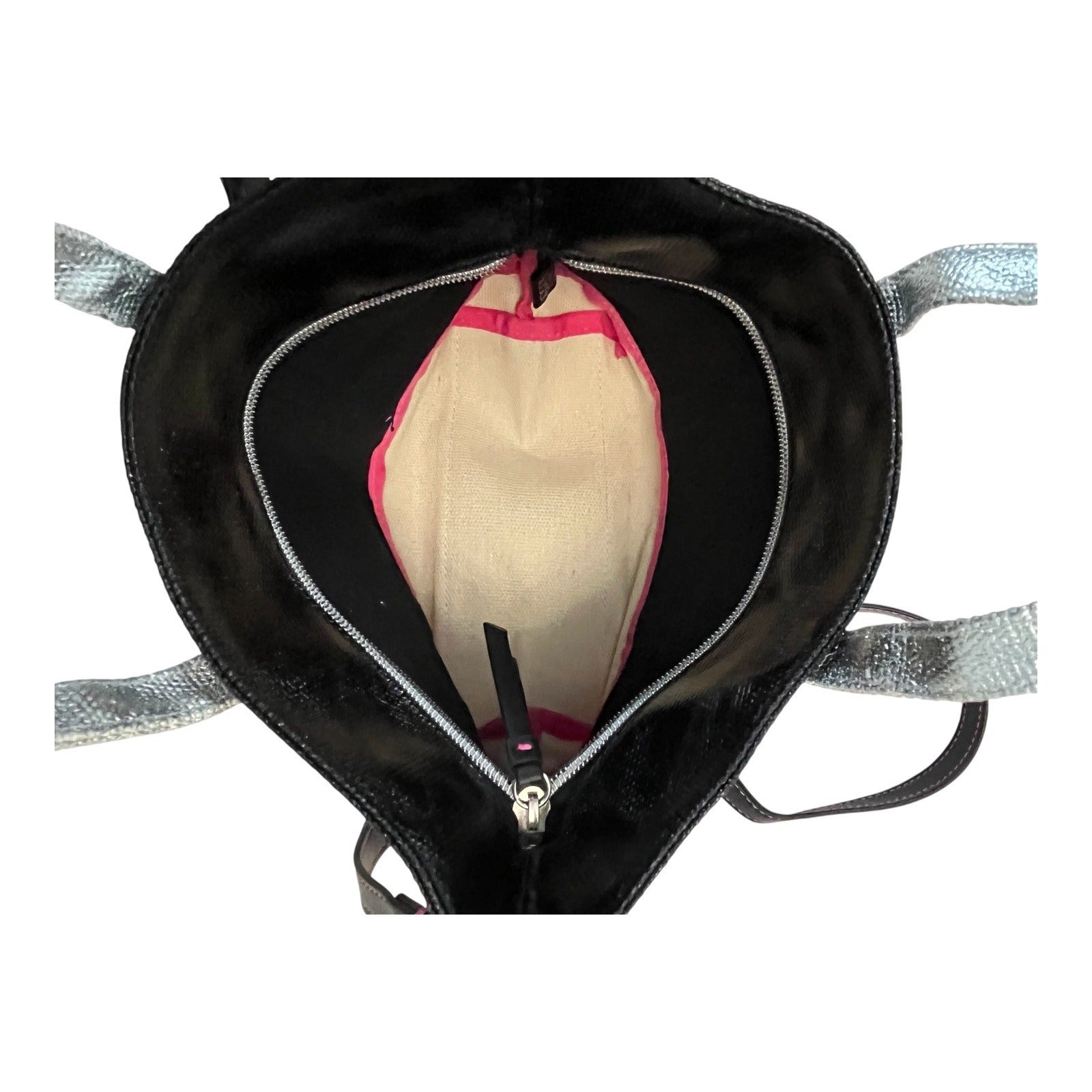 Add a touch of glam to your everyday look with this Victoria’s Secret mini tote bag, featuring a black textured body and eye-catching silver metallic trim. The zip-top closure keeps your items secure, while the interior offers enough room for essentials. Includes a detachable and adjustable crossbody strap for versatile wear.