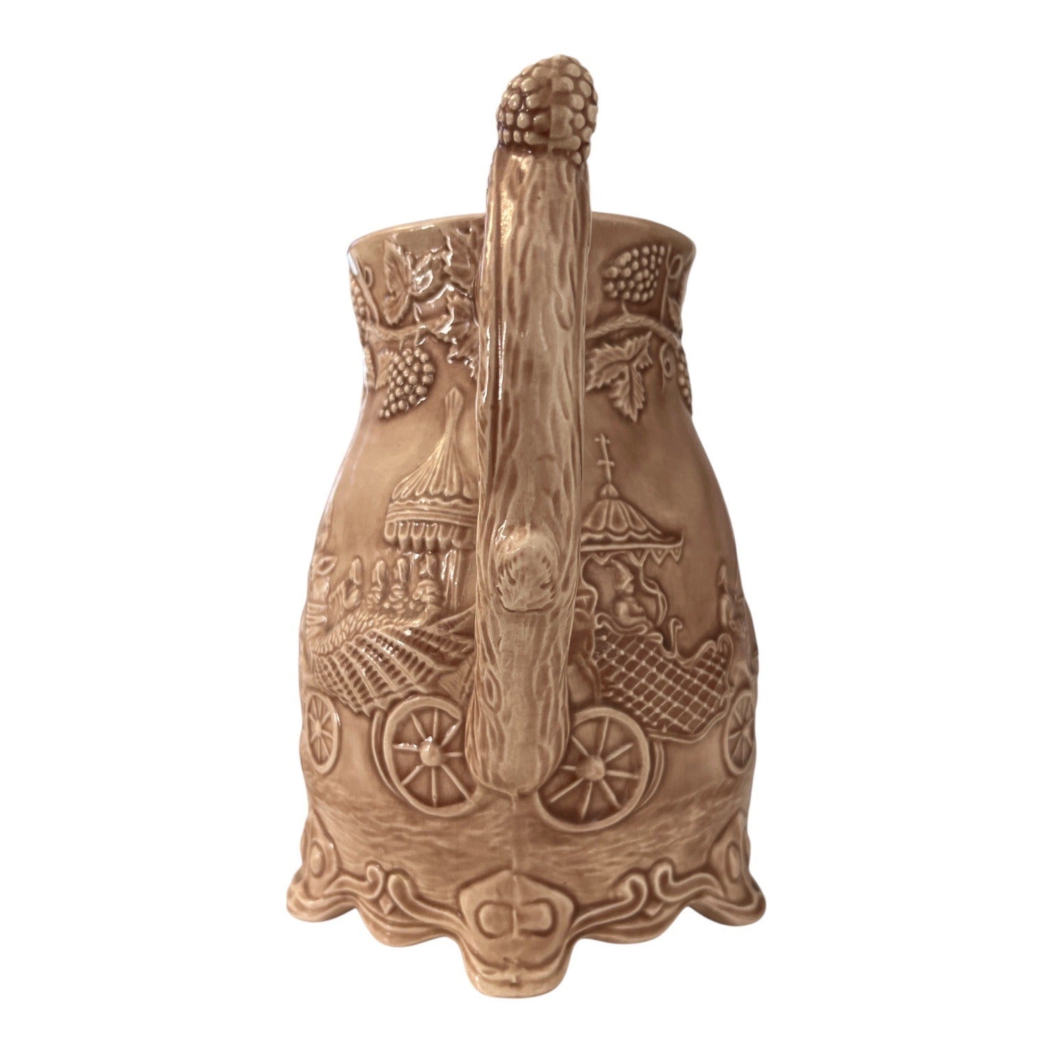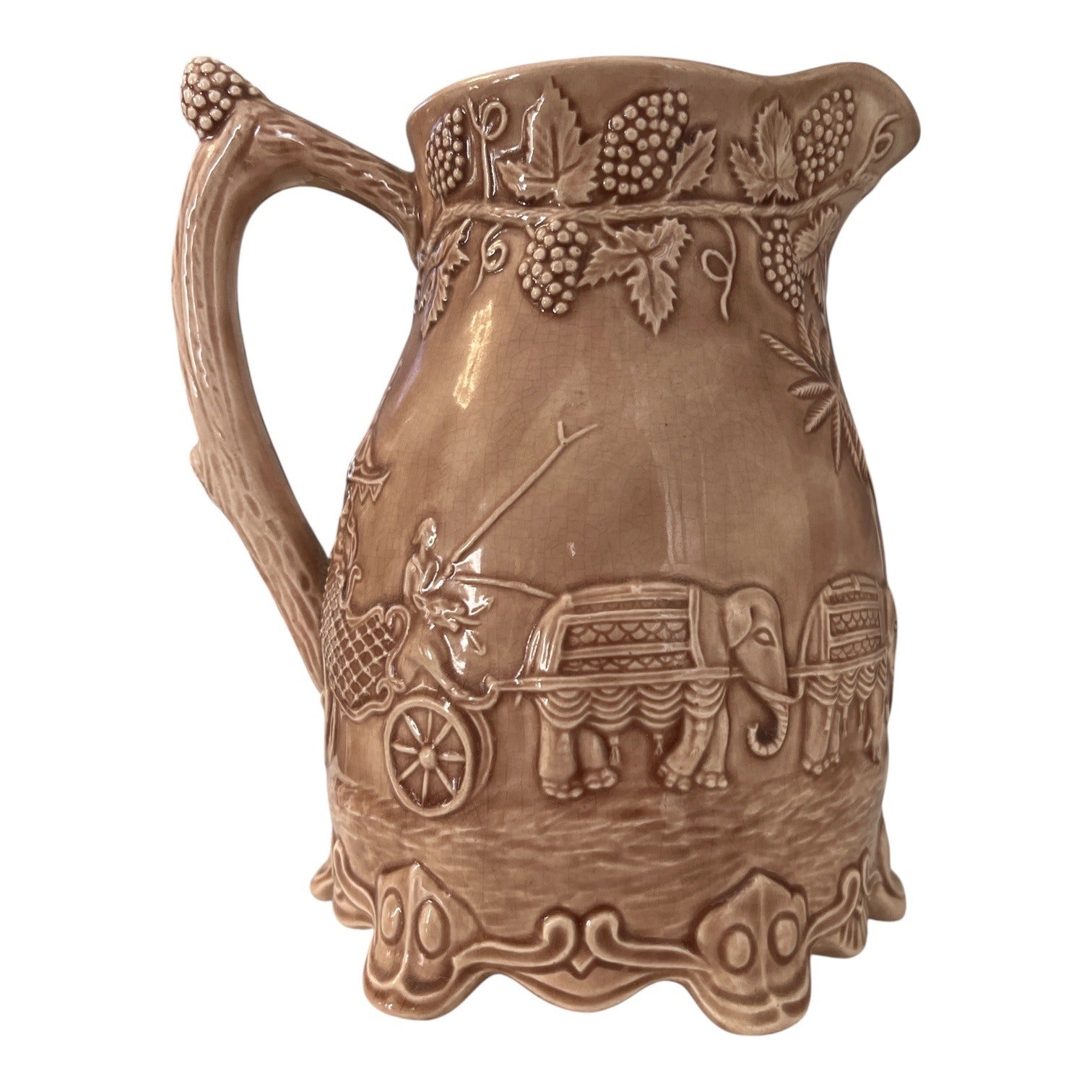 Vintage 1964 Signed Studio Pottery Pitcher Relief Caravan Elephant Camel Scene