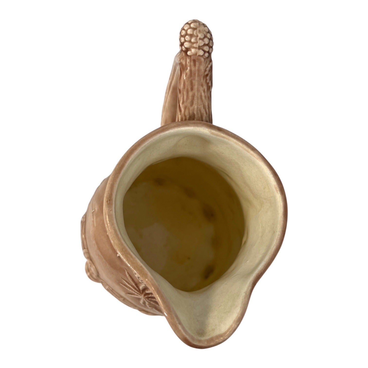 Beautiful vintage 1964 signed studio pottery pitcher featuring a raised relief caravan scene with elephants and camels in a desert landscape motif. Handcrafted with sculptural detail and a softly glazed finish, this piece showcases the charm and individuality of mid-century studio ceramics. The base is hand-initialed and dated by the artist, adding collectible appeal. Ideal as a decorative accent, display piece, or addition to an art pottery collection.
