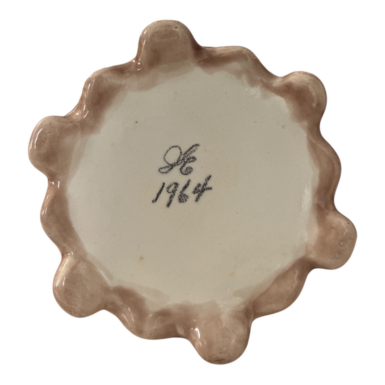 Good condition. No chips or cracks. Light age-related crazing and minor interior discoloration consistent with vintage handmade pottery.