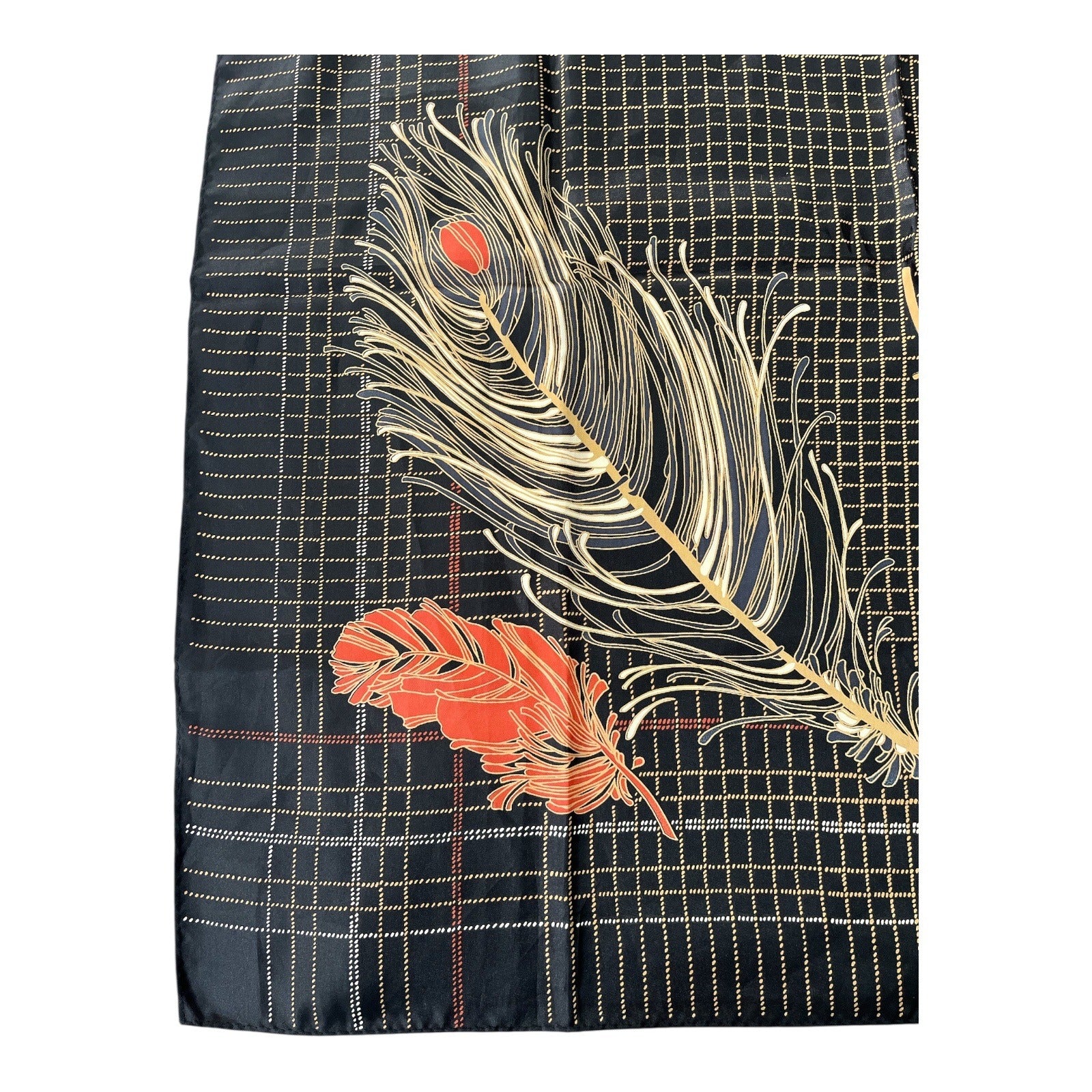 Vintage 1976 Totes Rain Scarf Water Repellent Feather Print Black Gold Red Japan 27”