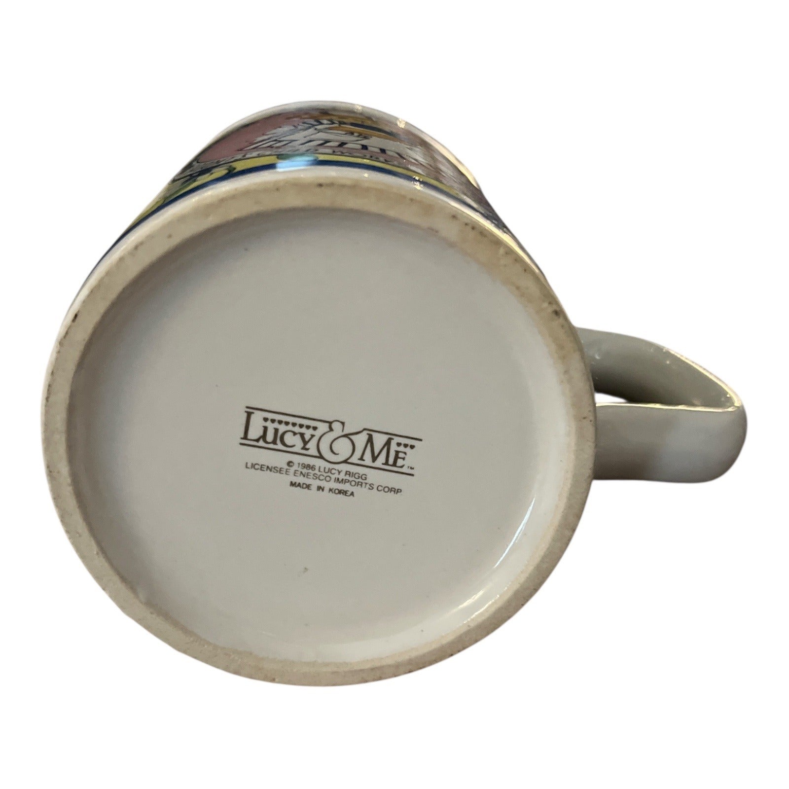 Celebrate the charm of the beloved Lucy & Me collection with this cheerful ceramic mug from 1986. Featuring a hardworking nurse bear surrounded by a floral border and the phrase “Saturday’s Child Works Hard for a Living,” it’s a delightful gift or nostalgic keepsake.