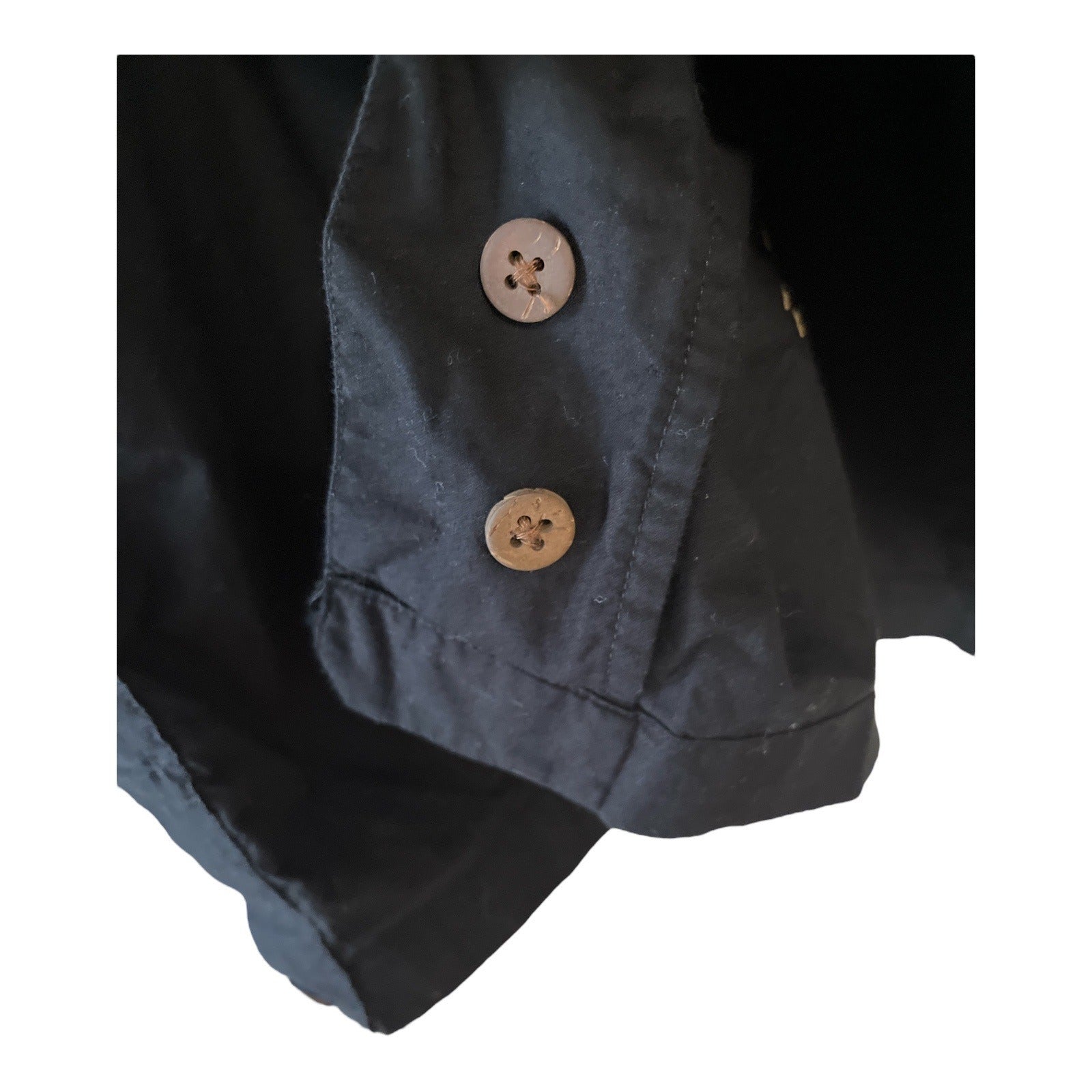 * Features: Button-down front, chest pocket, wooden-look buttons, side hem buttons