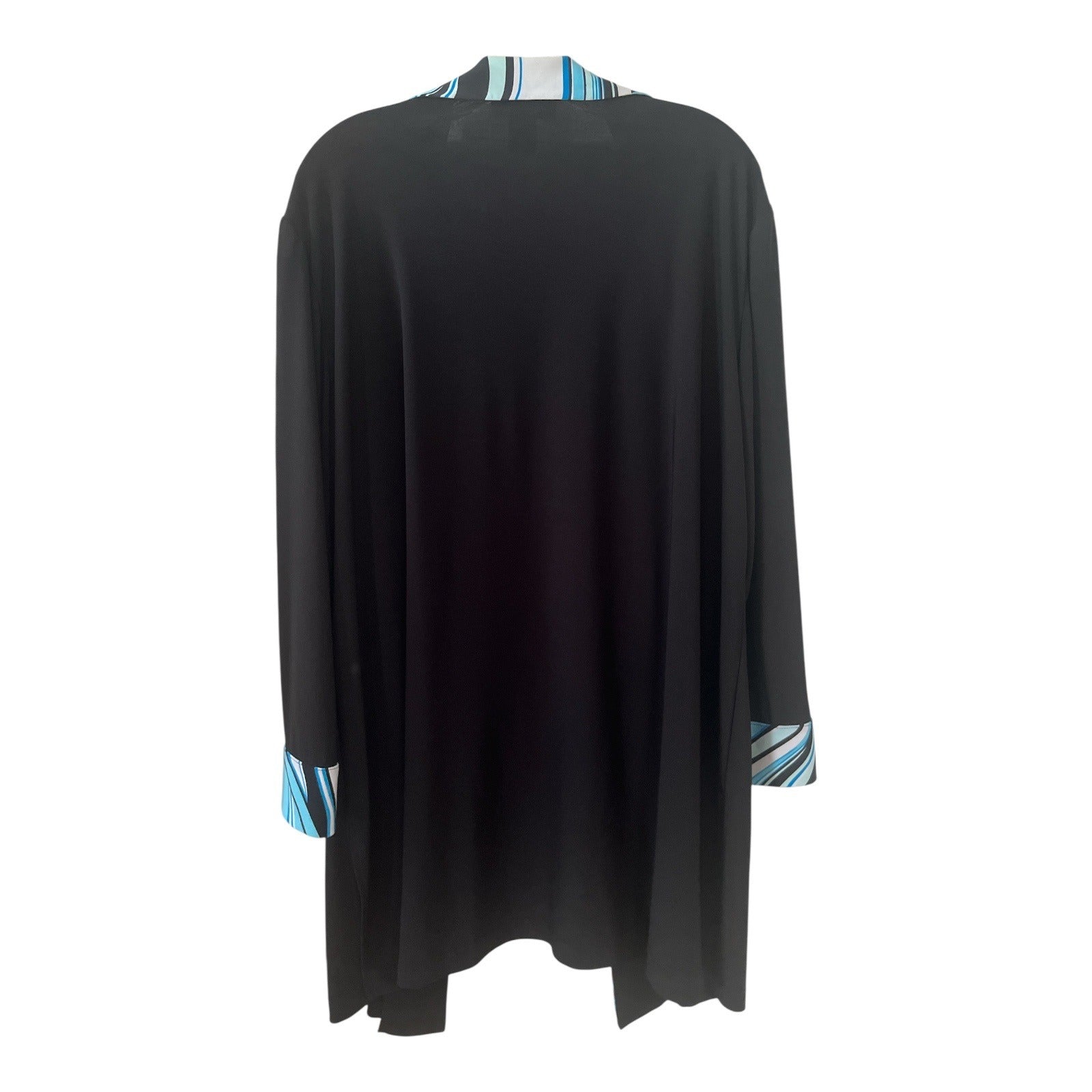 Vintage Anna Maxwell Open Front Jacket 22WP – Black with Blue Swirl Trim – Made in China