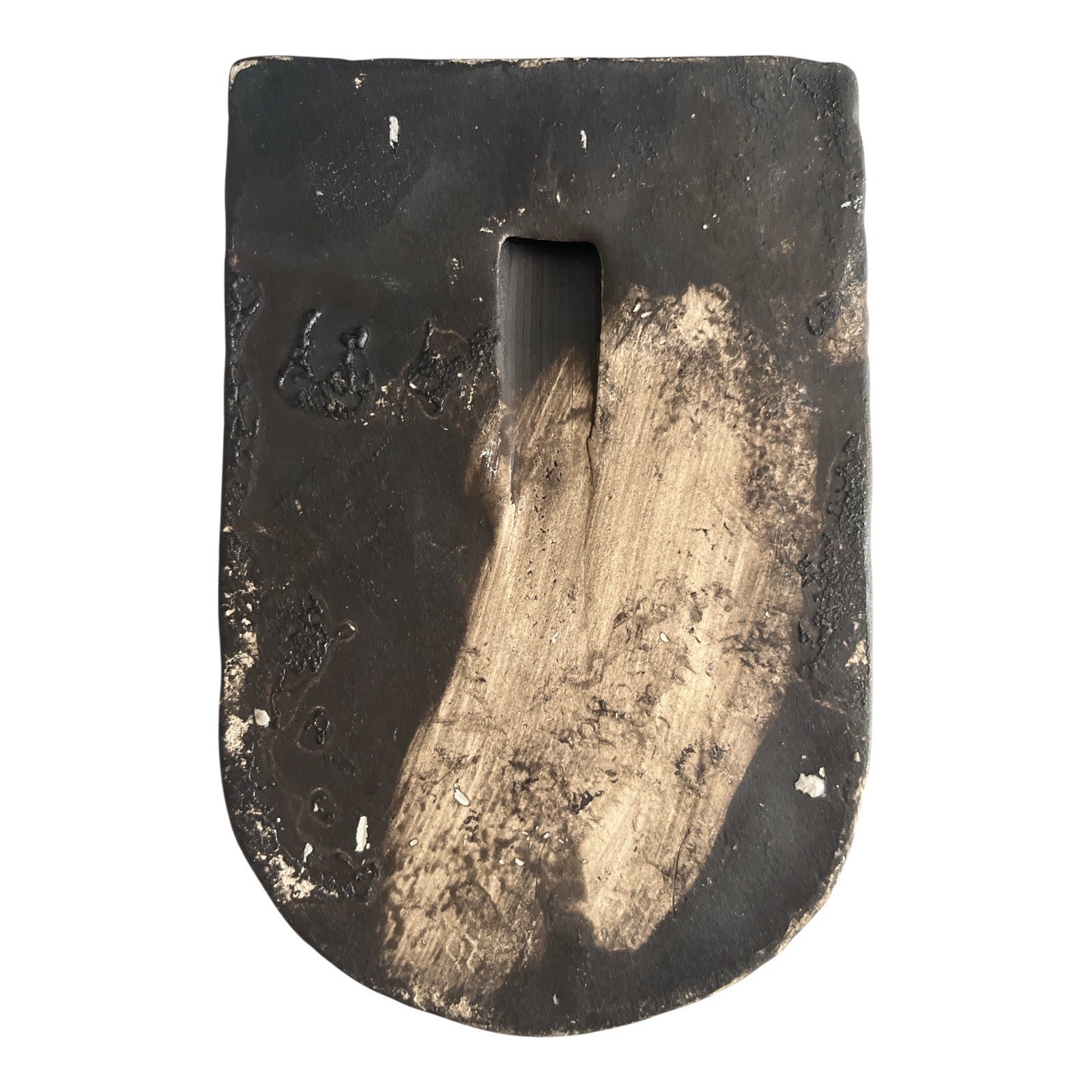This vintage ceramic wall plaque features the Town Musicians of Bremen from the Brothers Grimm fairy tale. The raised relief design shows the stacked donkey, dog, cat, and rooster with “BREMEN” across the top. Finished in contrasting light and dark glaze tones, the piece has a rustic handmade look. A rectangular cutout on the back allows for easy wall display.