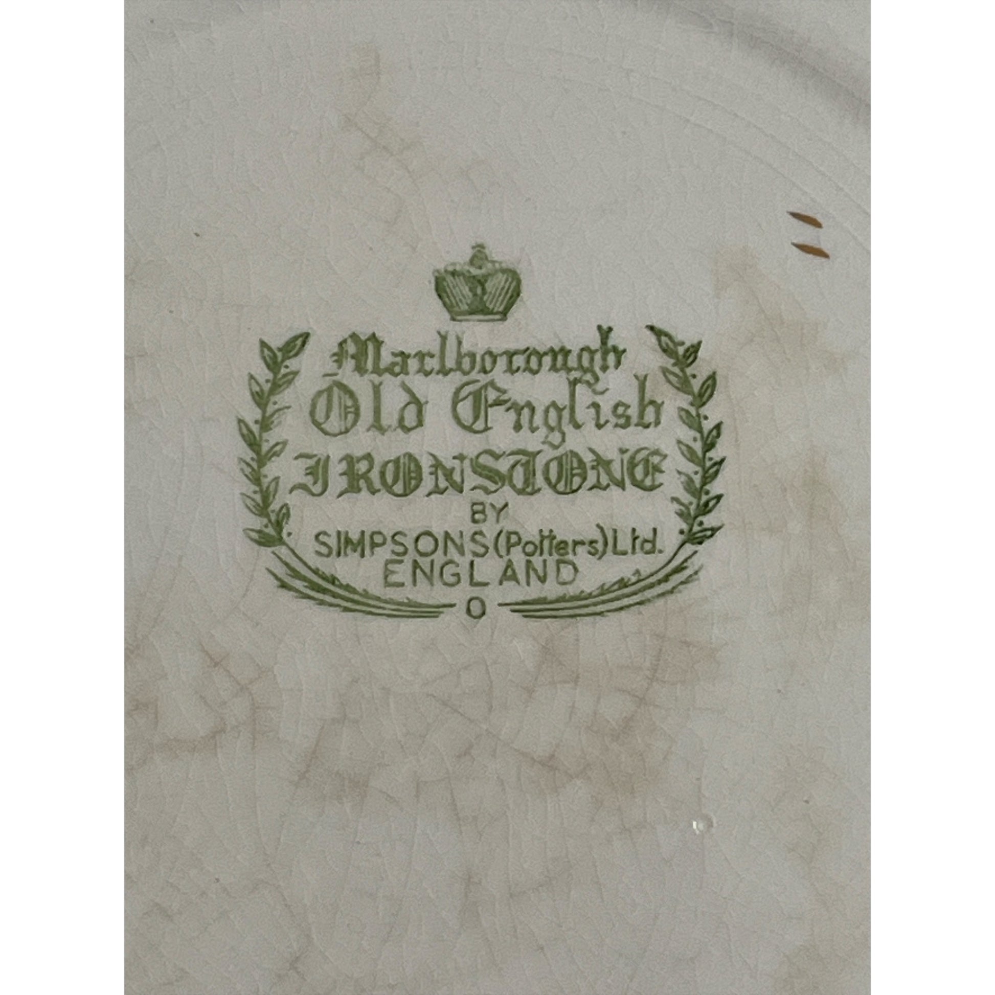 Good vintage condition. No cracks or chips observed. Age-related crazing throughout and light discoloration consistent with vintage ironstone. Gold trim shows minor wear.