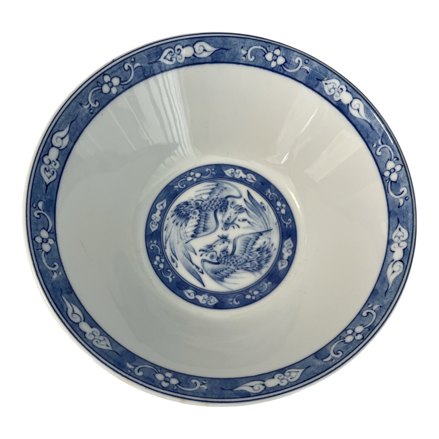 Vintage Chinese Porcelain Bowl Red Exterior Blue White Phoenix Motif 7.5 Inch