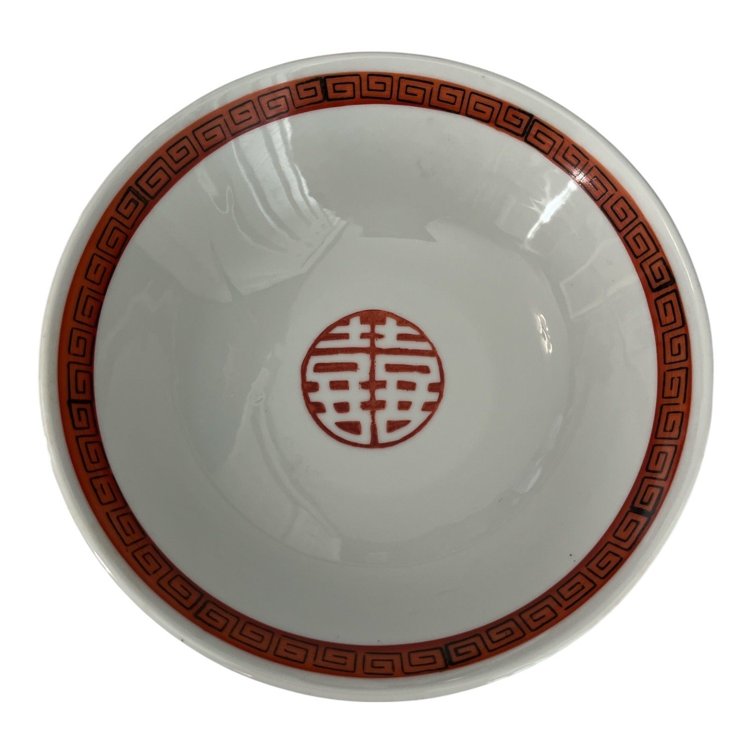 Vintage Chinese Red Longevity Bowl 8” Porcelain Double Happiness Symbol 435 Mark