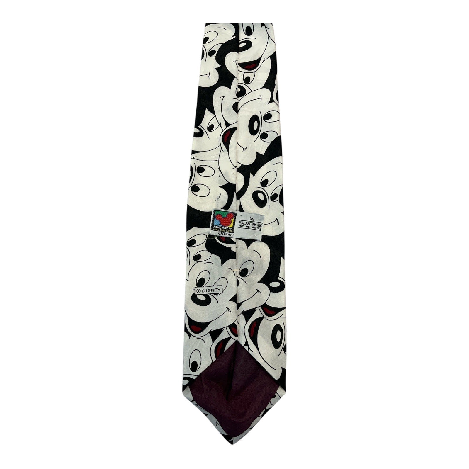 Bring bold Disney flair to your wardrobe with this vintage Mickey Mouse necktie from the Mickey Unlimited collection by Balancine Inc. Featuring a fun allover pattern of Mickey’s smiling face in black and white with pops of red, this tie captures classic cartoon style in a wearable statement piece.