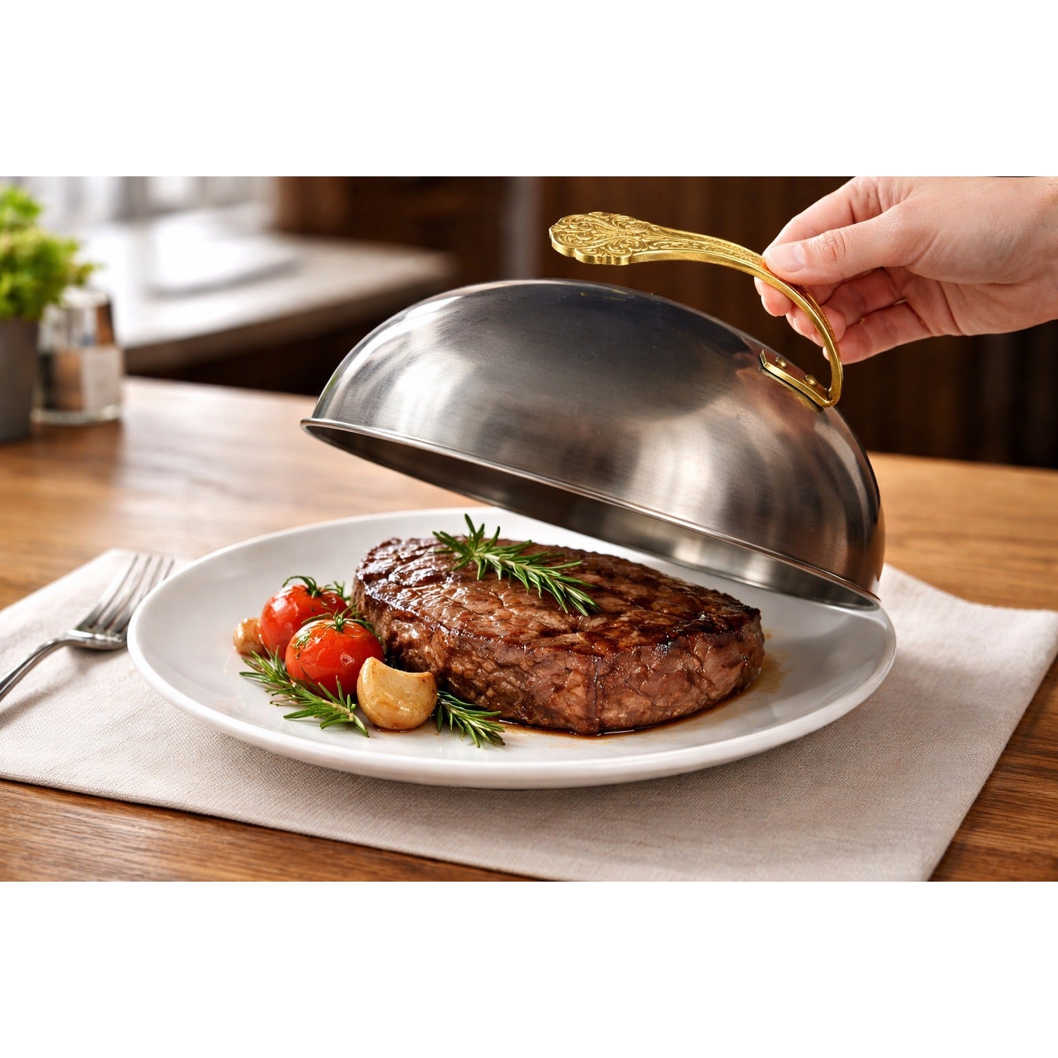 The larger 11-inch diameter makes this an ideal full-size restaurant steak cover, commonly used in fine dining and hotel service. Heavy, well-made, and built to commercial standards.