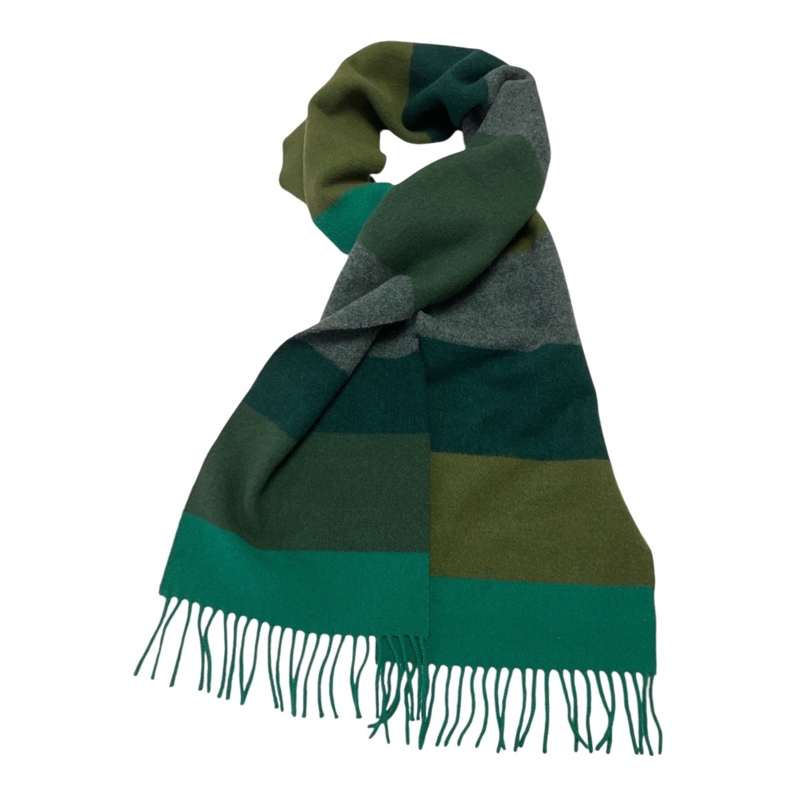 Vintage Express Scotland Wool Cashmere Scarf – Green & Olive Block Stripe