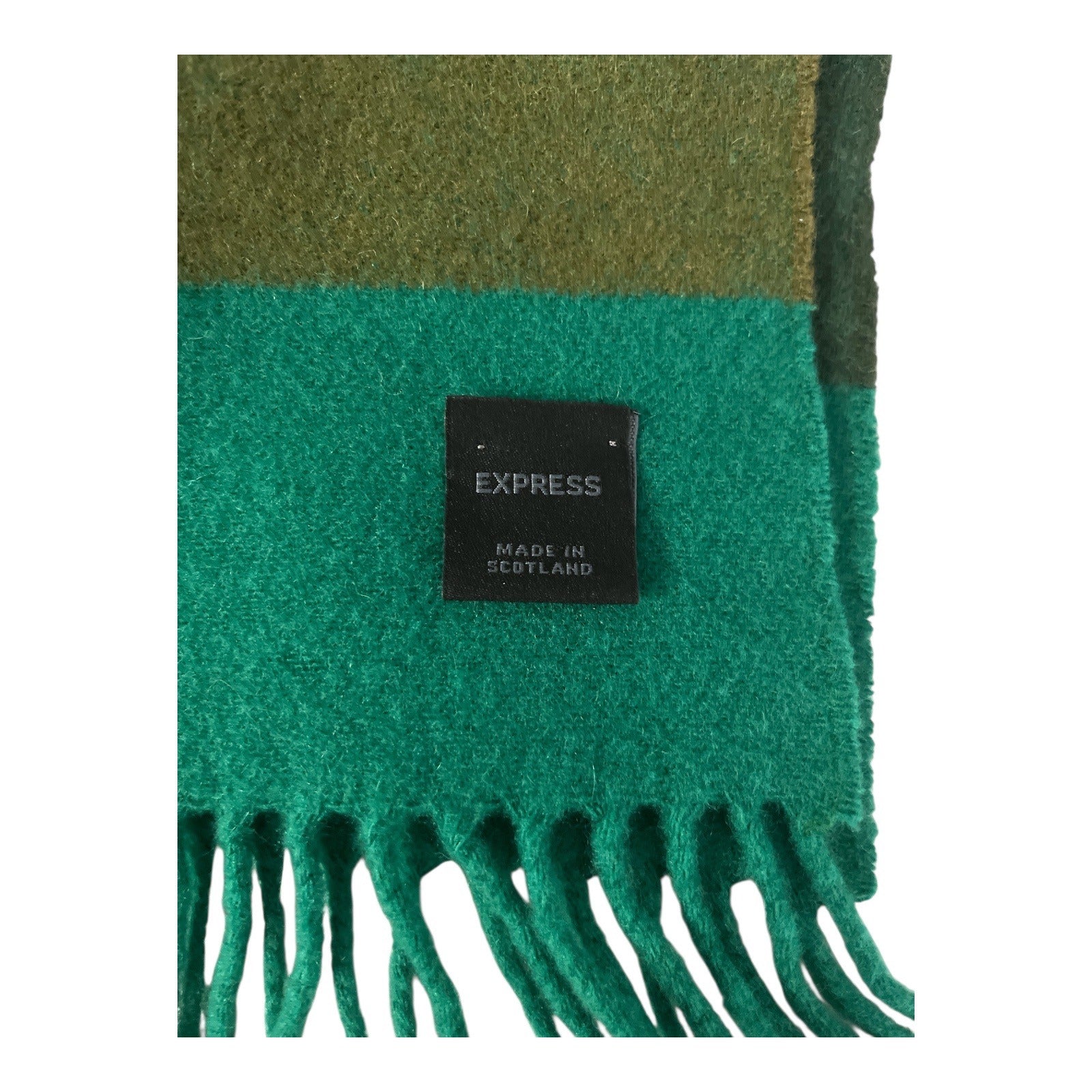Wrap yourself in timeless style with this vintage Express scarf, made in Scotland from a luxurious blend of 90% merino wool and 10% cashmere. Featuring bold green and olive block stripes, soft woven texture, and classic fringe ends, it’s a versatile cold-weather accessory with lasting quality.