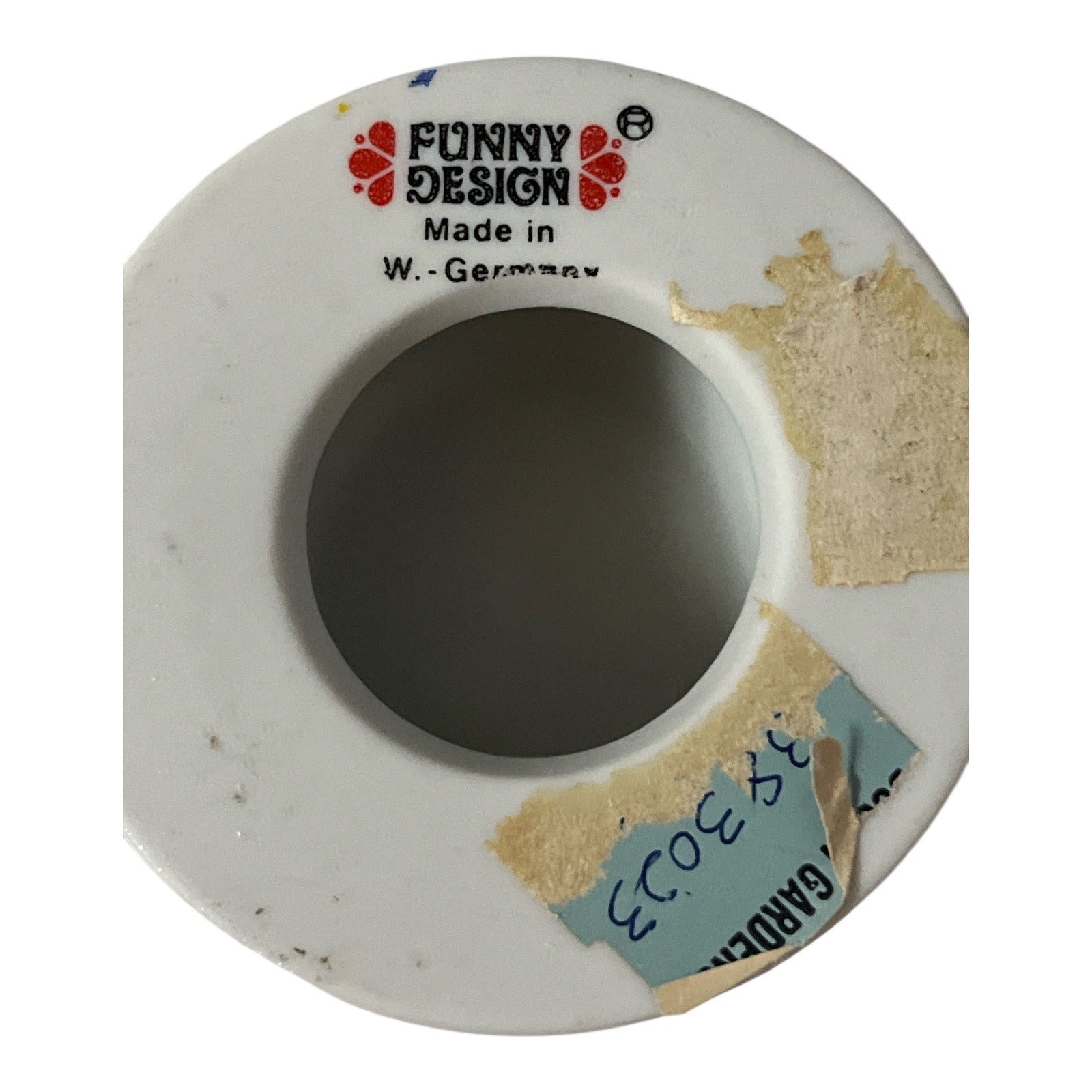 Vintage Funny Design Blue White Candle Holders Pair West Germany Ceramic