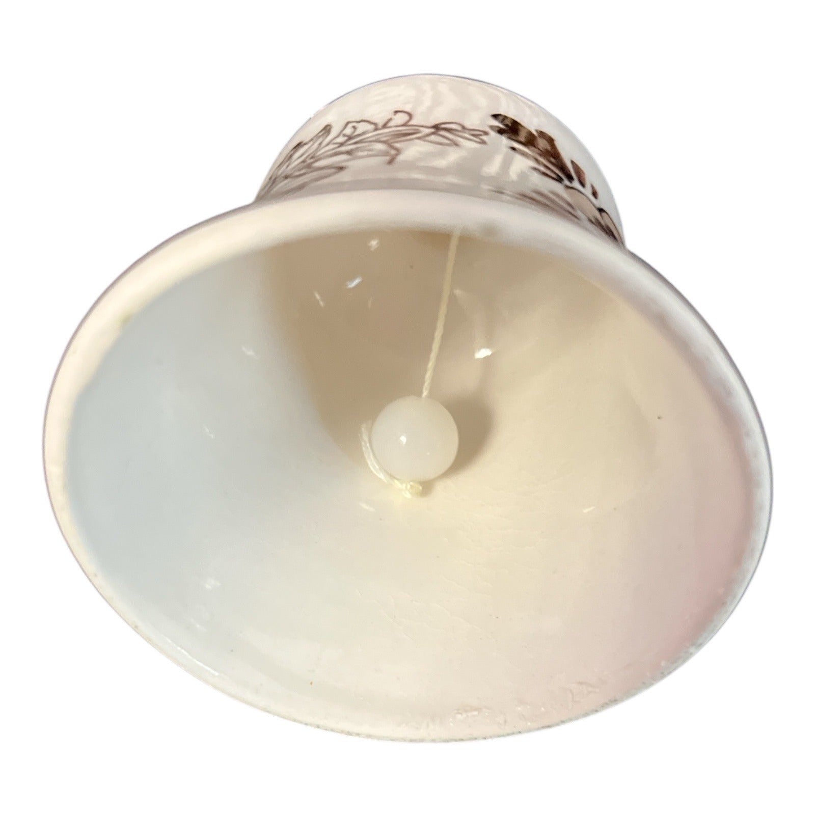 Charming Hershey’s ceramic bell from 1982 featuring the classic **Hershey’s trademark girl with cocoa pod design**. Decorated in brown transferware style with floral cocoa pod accents, dark brown handle, and a glossy glaze. Includes original ceramic clapper inside. A wonderful piece for Hershey’s memorabilia collectors or vintage advertising enthusiasts.
