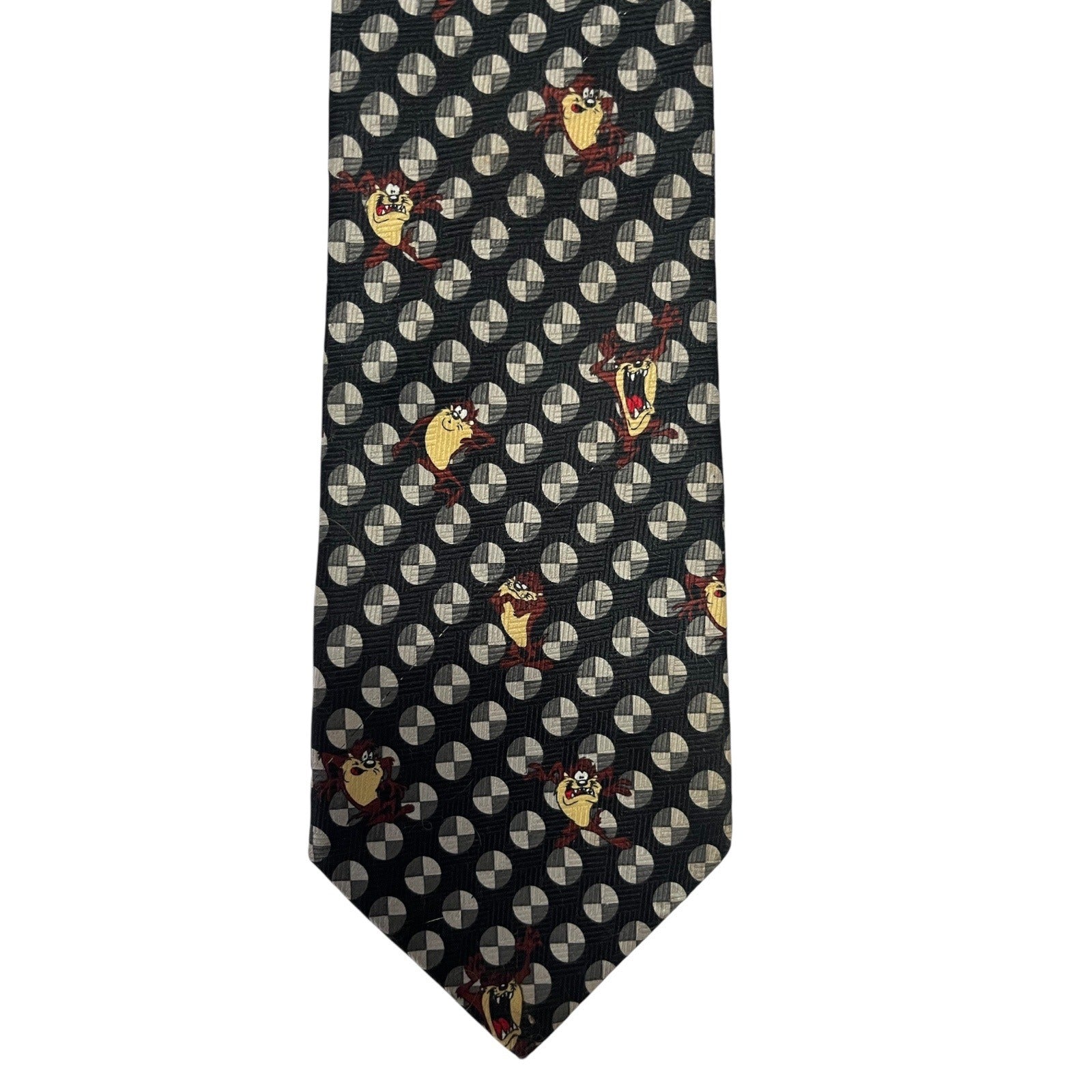 Vintage Looney Tunes Taz Necktie – Black Geometric Print – 2000 Warner Bros