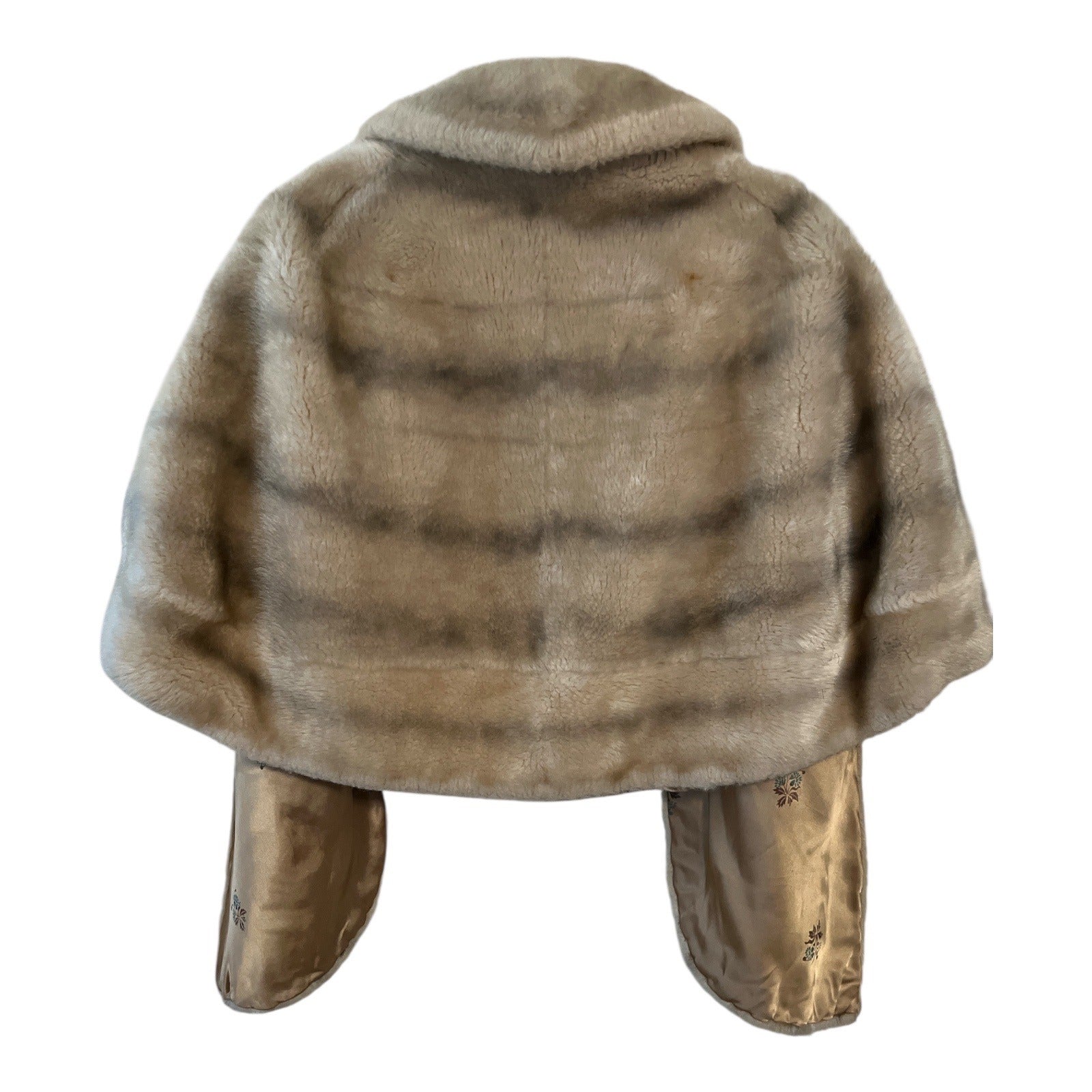 Vintage Mid-Century Fur Stole – Printed Satin Lining – Blonde Wrap Cape (Coarse Texture, Possibly Real Fur)