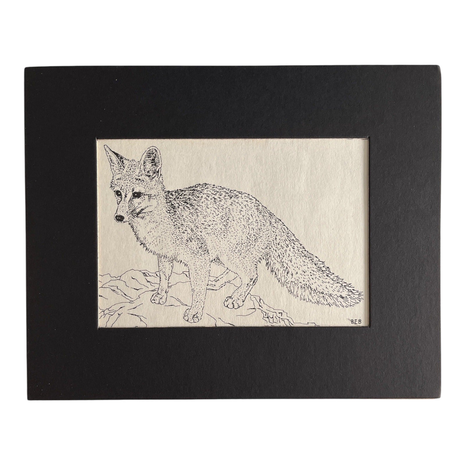 Vintage Original Pen-and-Ink Fox Drawing – Signed “BEB” – Matted 8x10 (Image 5x7)