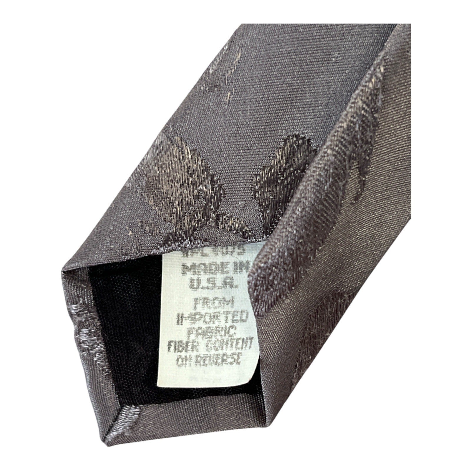 Vintage novelty necktie by Lost Kingdom featuring an all-over panda bear scene set among trees and foliage. The detailed wildlife print and wider vintage profile give this tie a distinctive late-20th-century look, perfect for collectors, animal lovers, or statement styling. Made in the USA from imported organic fiber content.