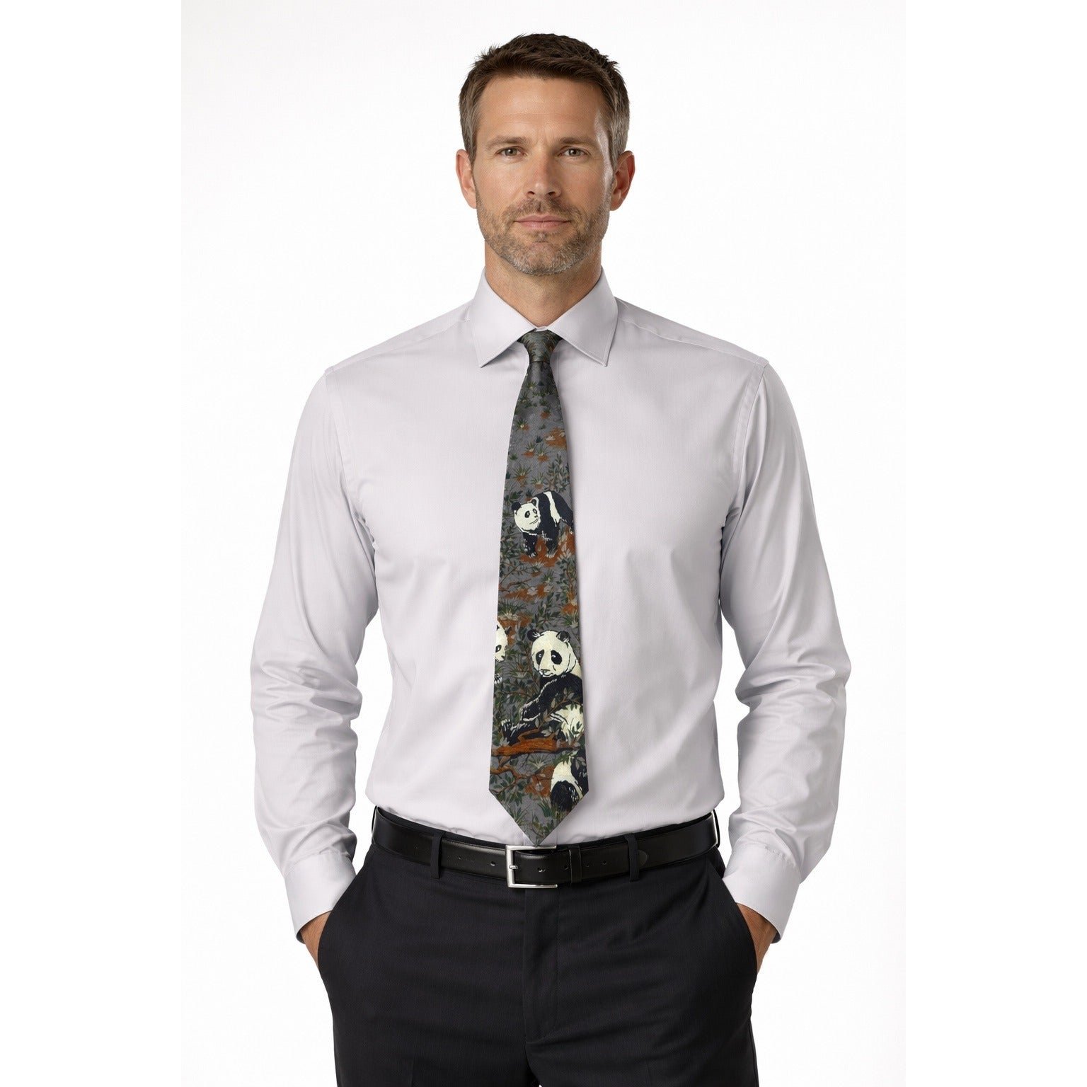 Vintage Panda Print Necktie Lost Kingdom Wildlife Theme Wide Tie