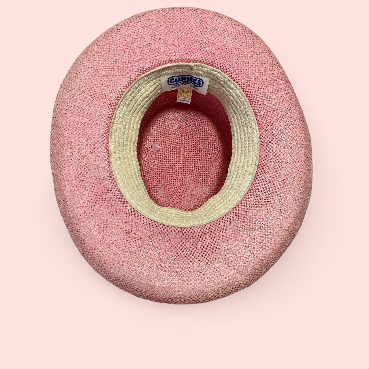 Vintage Pink Straw Hat with Sheer Scarf Wrap – Cushees S/M – Made in Mexico