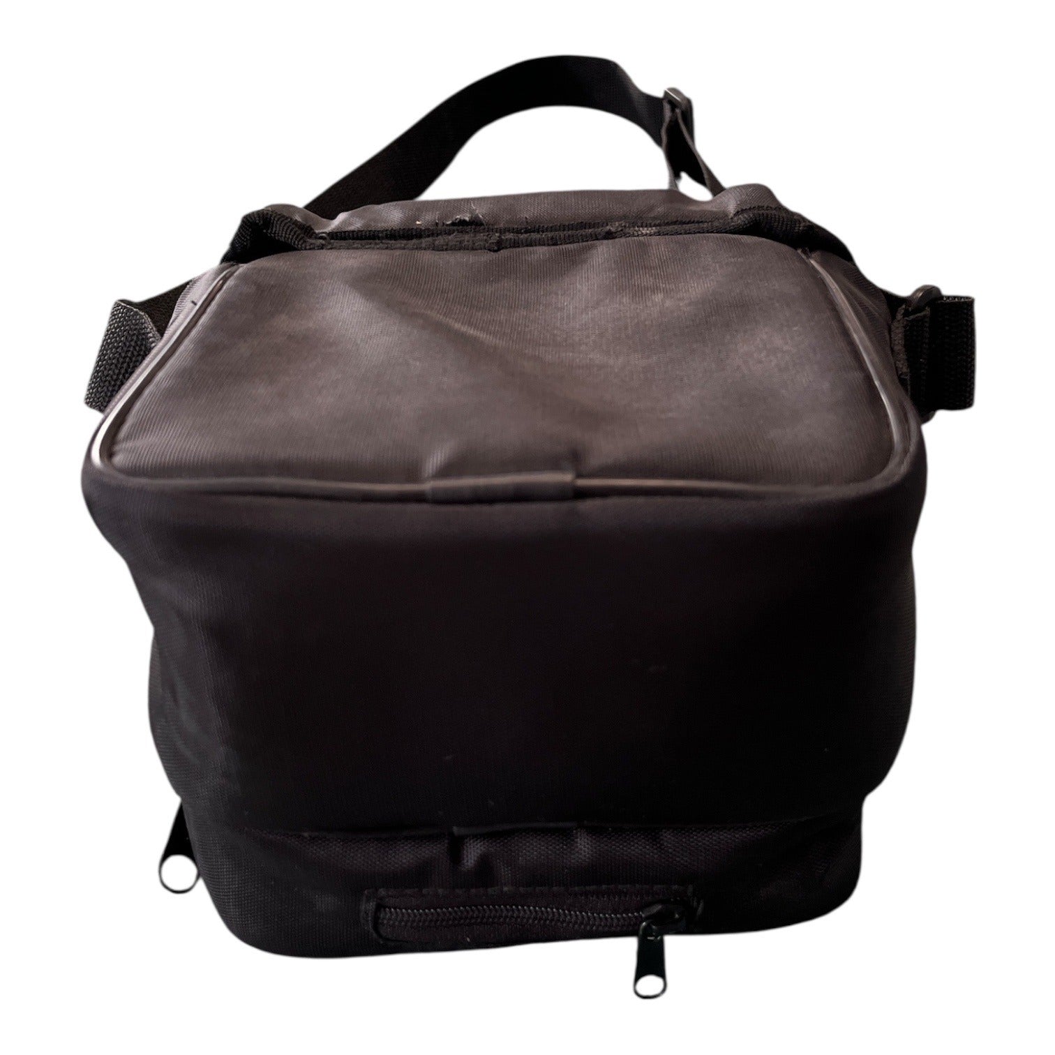 Good condition. Clean interior and functional zippers. Exterior shows visible wear and a small worn spot along the top seam consistent with age and use.