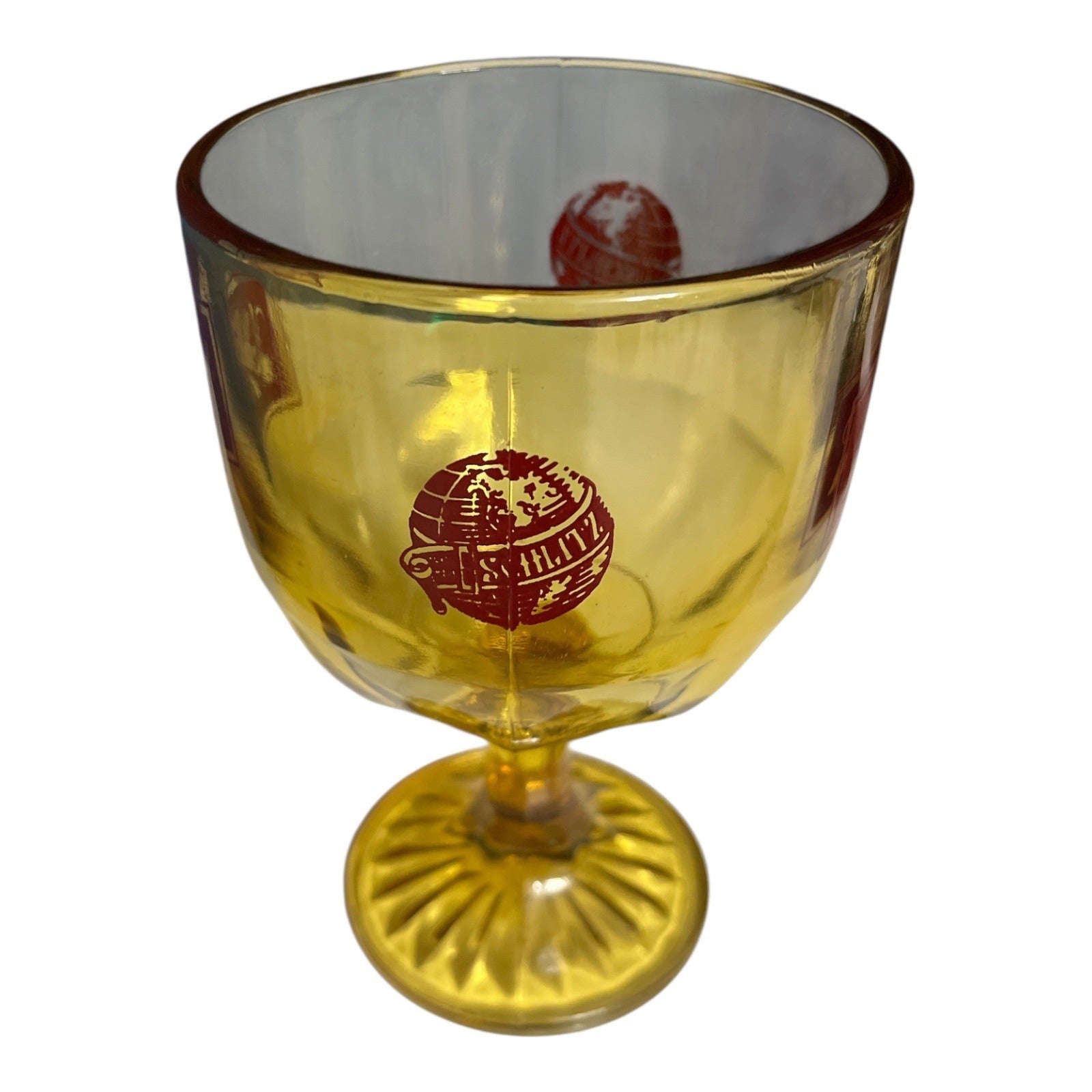 Vintage Schlitz Beer Goblet – Amber Glass Pedestal Logo Chalice