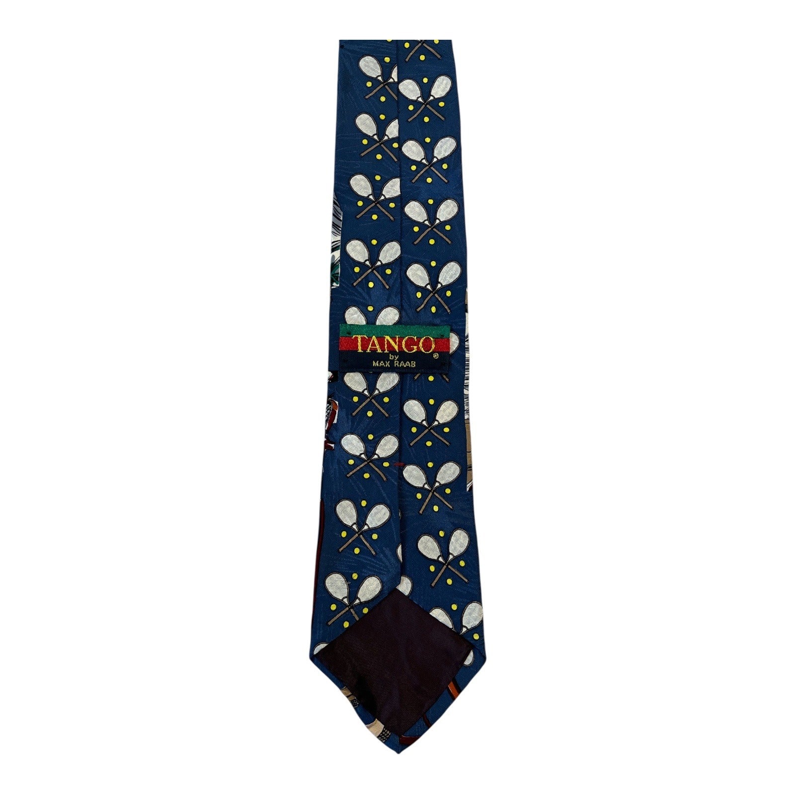 Vintage Tango by Max Raab Silk Necktie – Tennis Player & Racket Pattern – Made in USA