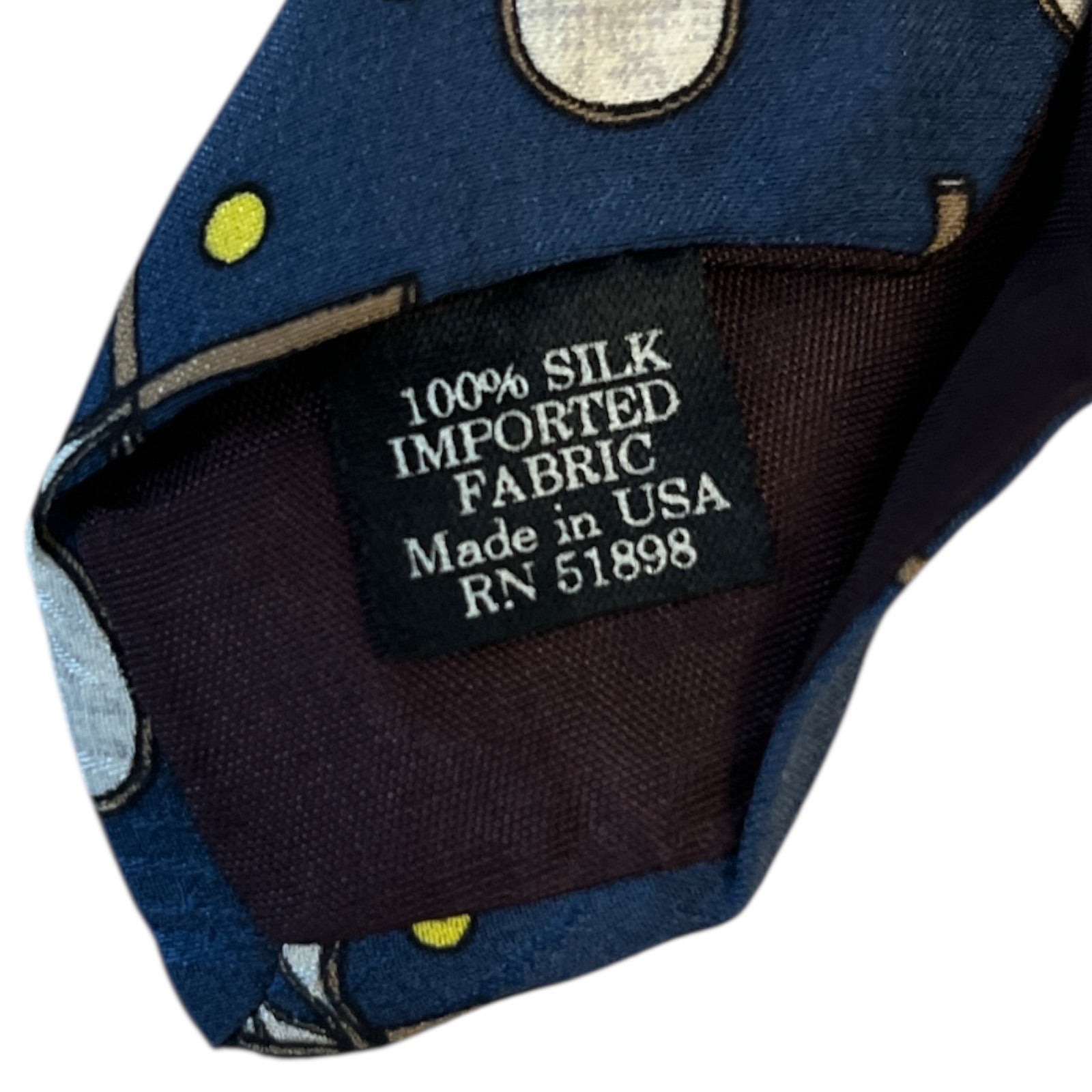 This vintage **Tango by Max Raab** necktie features a bold tennis design with detailed players in action, rackets, and tennis balls set against a rich navy blue background. Made in the USA from imported 100% silk, this tie captures the energy of the game while maintaining a classic, collectible quality. A great gift for tennis enthusiasts or collectors of unique statement ties.
