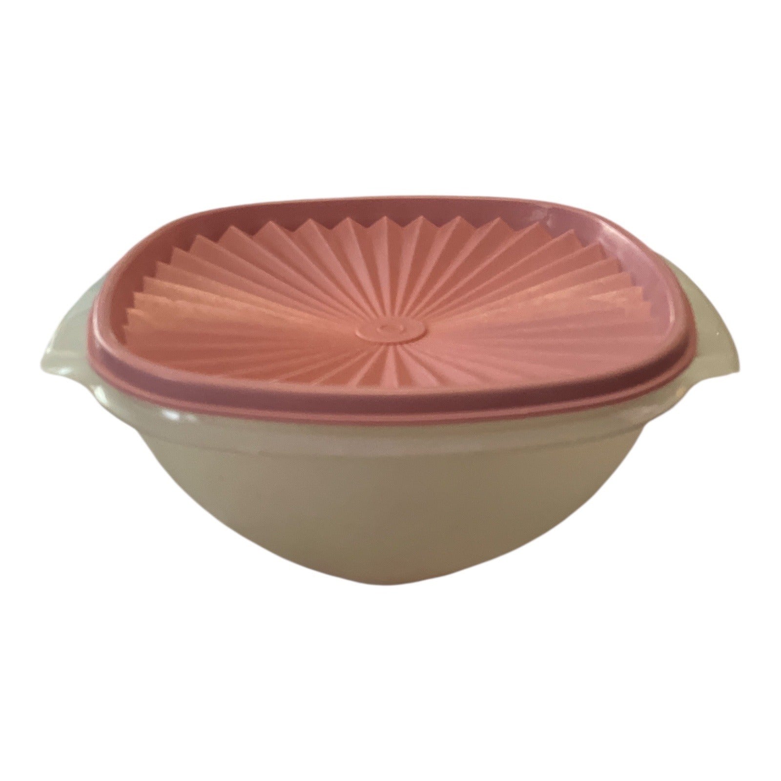 Vintage Tupperware Square Harvest Bowl with Sheer Base & Pink Lid