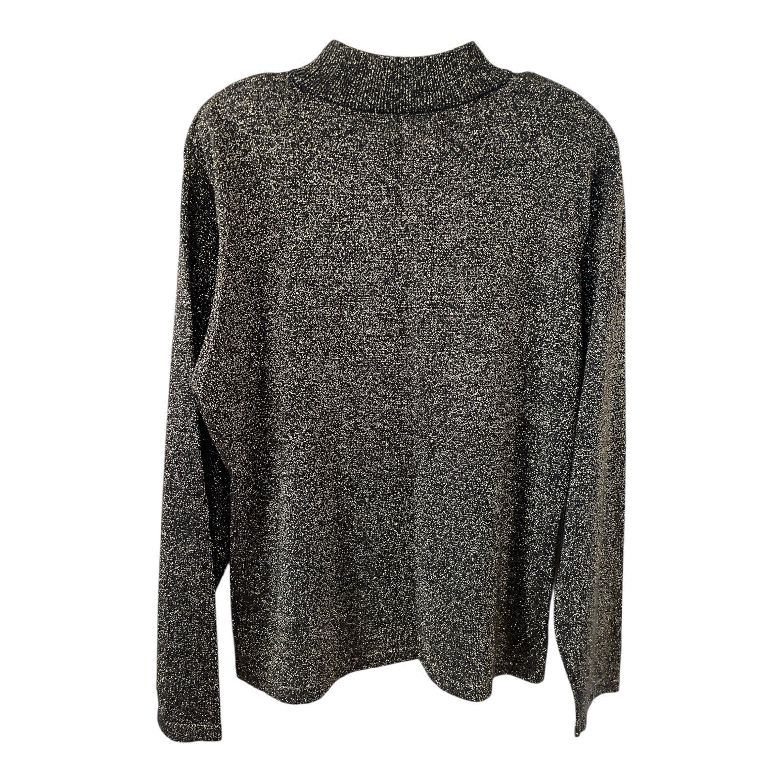 Vintage Yarnworks Metallic Knit Top | Black Gold Shimmer | XL | Made in Hong Kong | 80s Shoulder Pads | 46 x 25